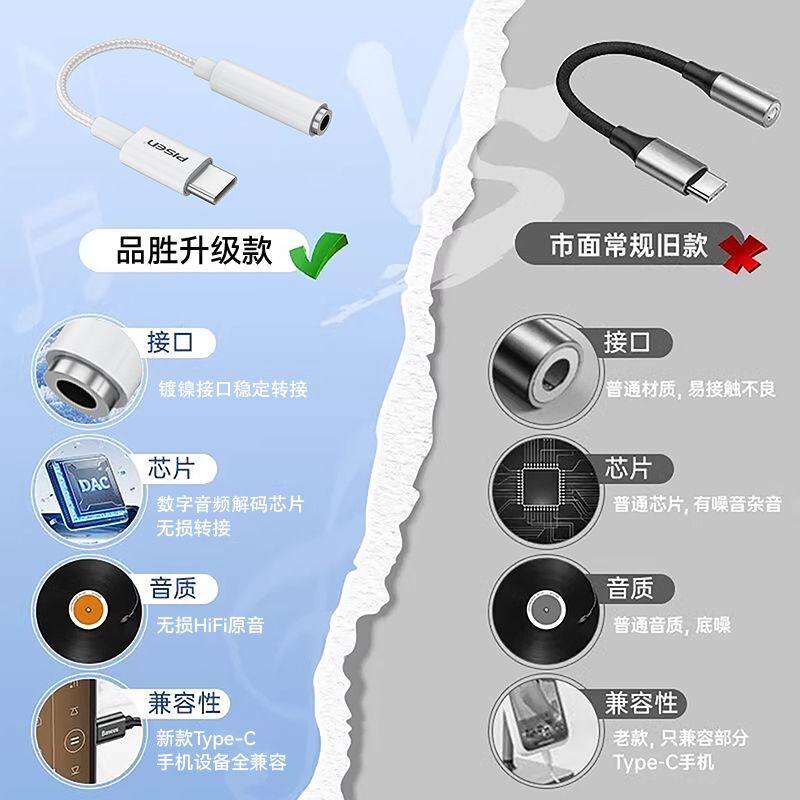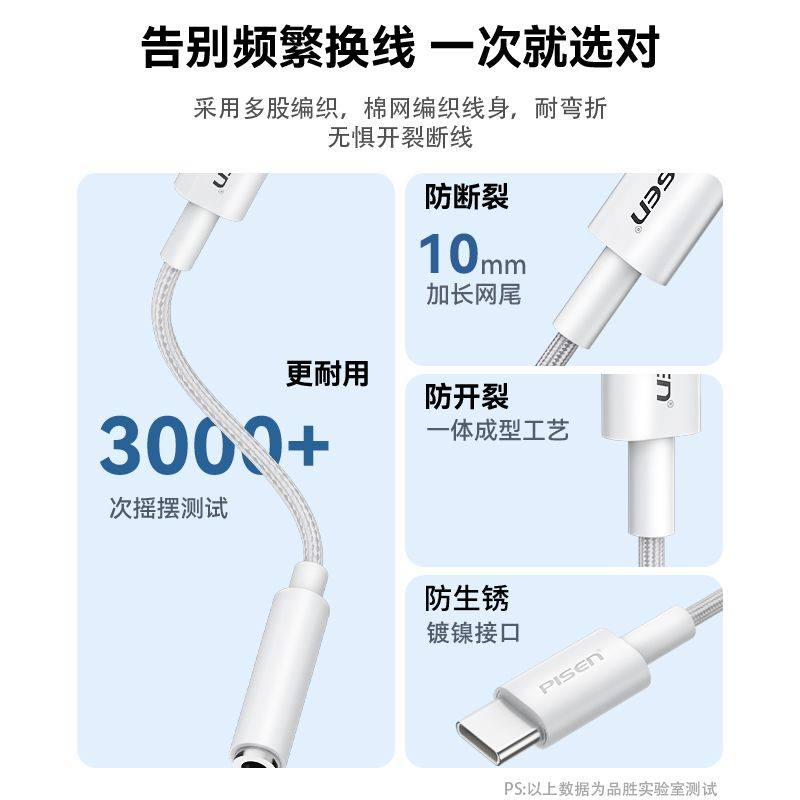 品胜耳机转换头typec适用苹果16转接头华为iPhone小米15vivo荣耀安卓c口转3.5mm有线音频音乐口圆孔转换器