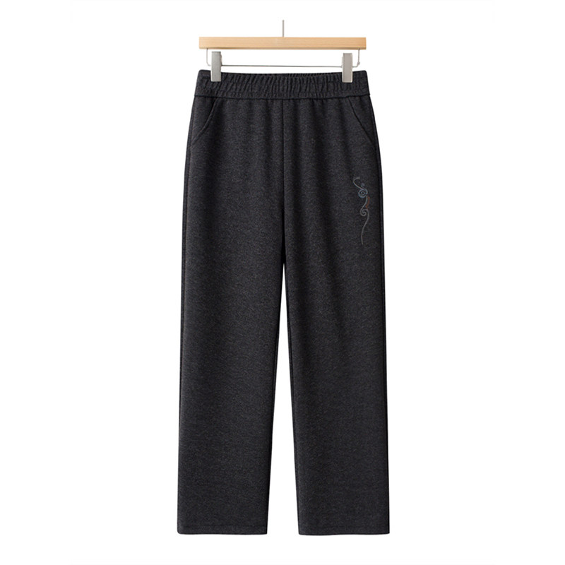 中老年人妈妈秋冬休闲裤加绒加厚呢子长裤老太太奶奶绣花宽松裤子