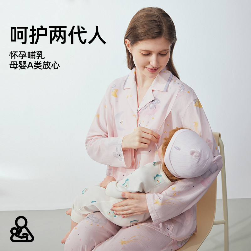 婧麒月子服夏季薄款产后纱罗孕妇睡衣怀孕期哺乳喂奶家居服套装女