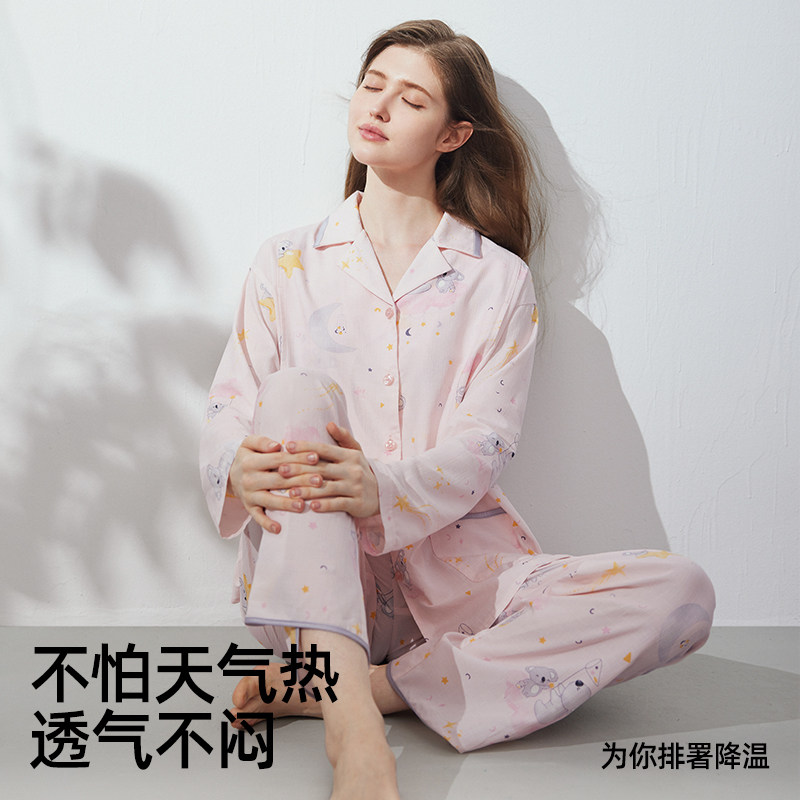 凉感莫代尔带胸垫月子服春夏季薄款产前产后春秋孕妇哺乳喂奶睡衣