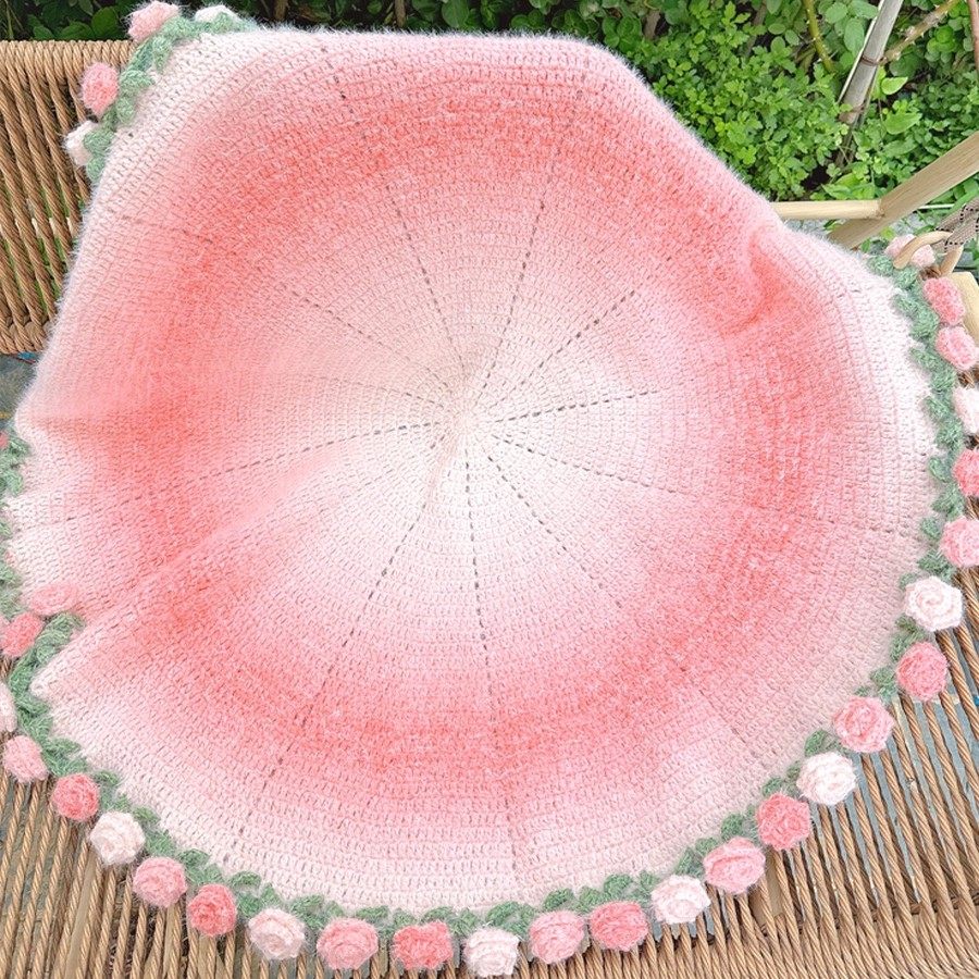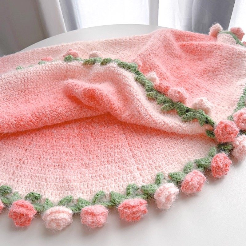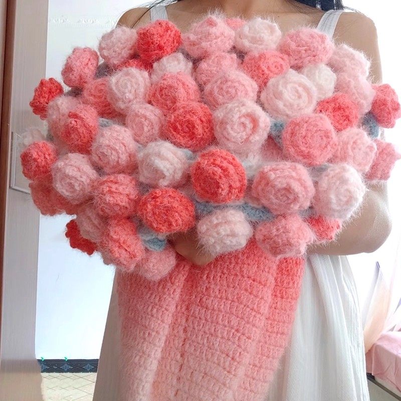 新款渐变玫瑰花毯diy手工编织毛线花束毯子材料包送女友礼物线团