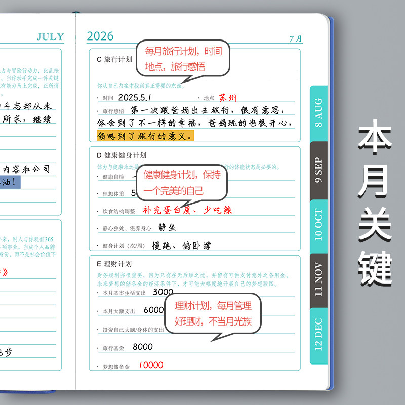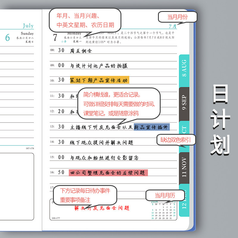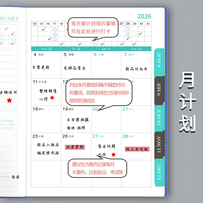 A4日程本2026年计划本一日一页日记本时间管理效率手册手账自律打卡周表大号软皮笔记本子日历记事本定制logo