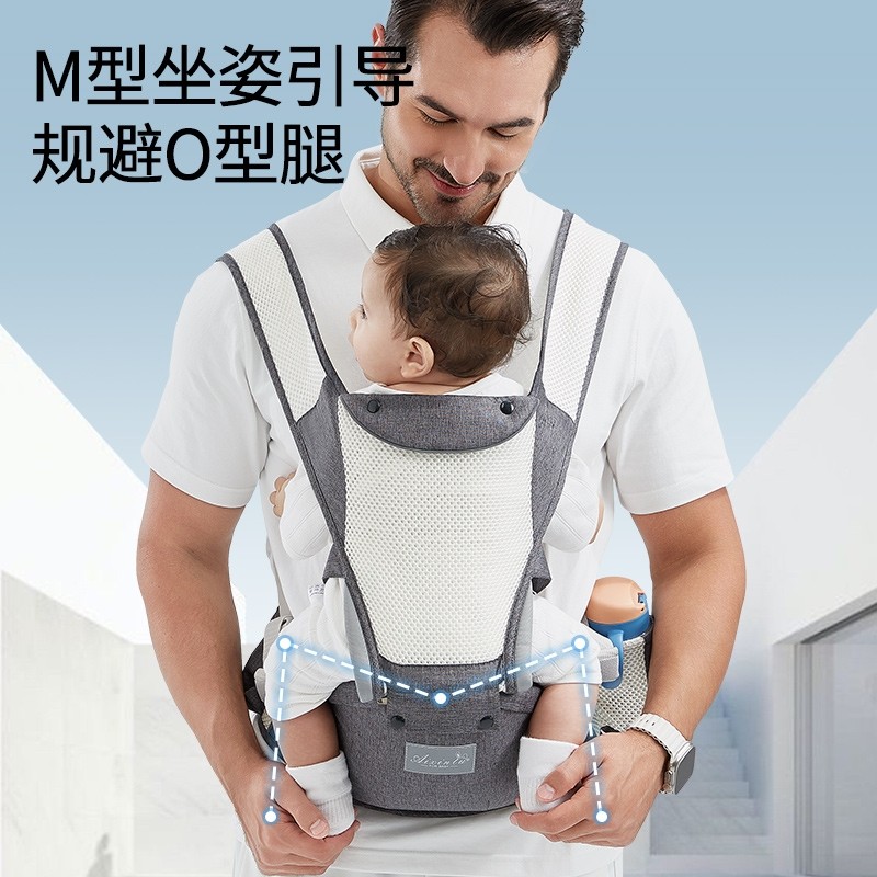 布兜妈妈婴儿背带腰凳夏季前抱式透气抱娃神器多功能坐凳纯棉轻便