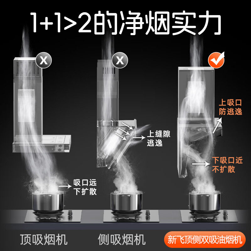 新飞油烟机家用厨房大吸力顶侧双吸油烟机自动清洗7字型抽油烟机