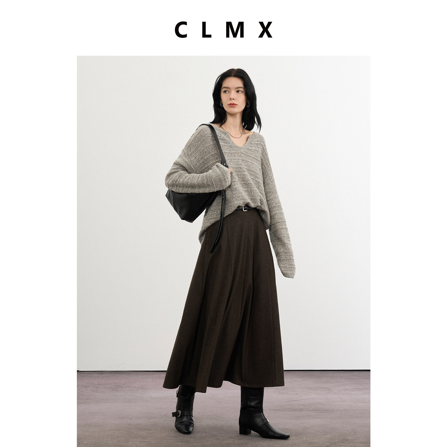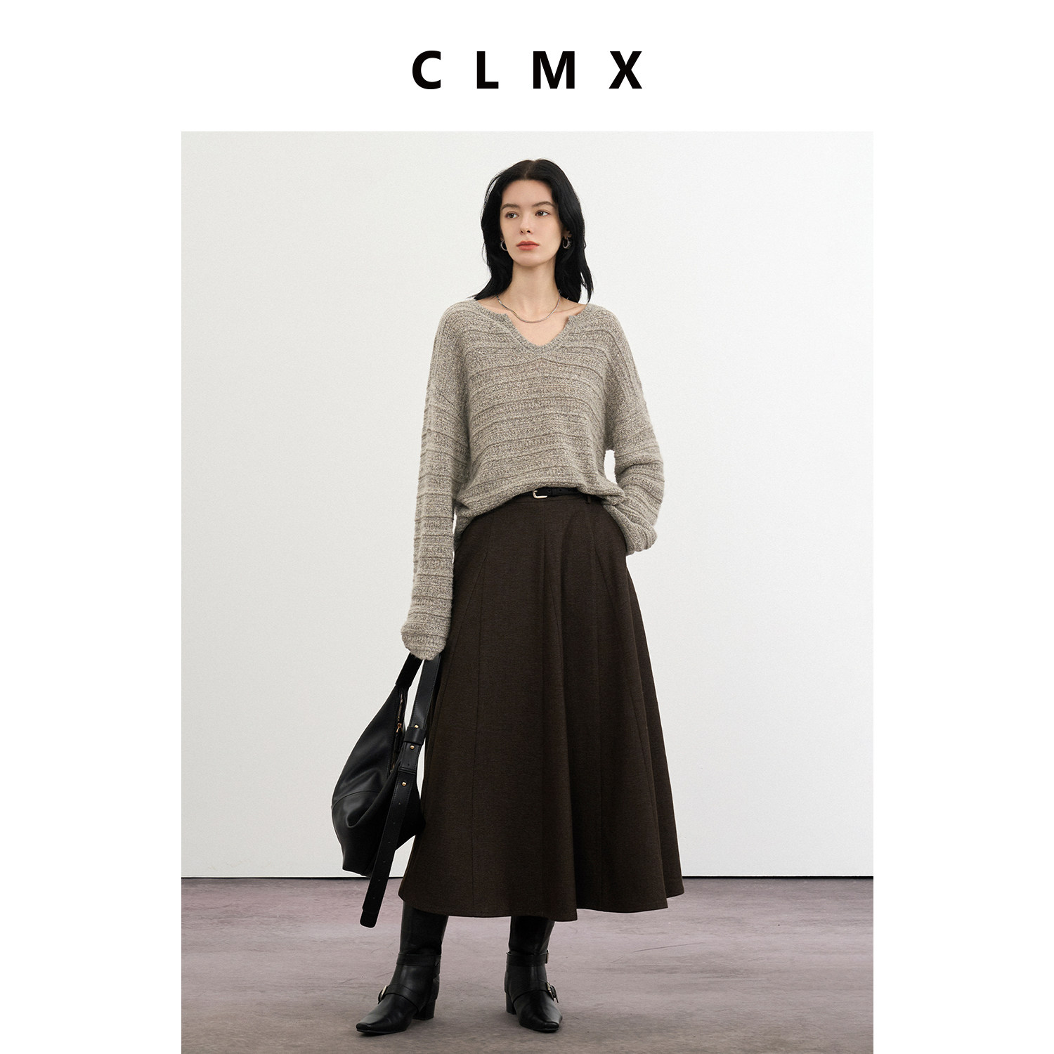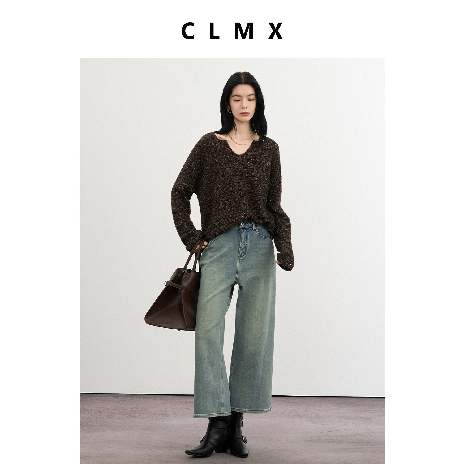 CLMX经典叠穿风V领针织衫羊绒羊毛莱赛尔小珠片花纱秋冬通勤毛衣