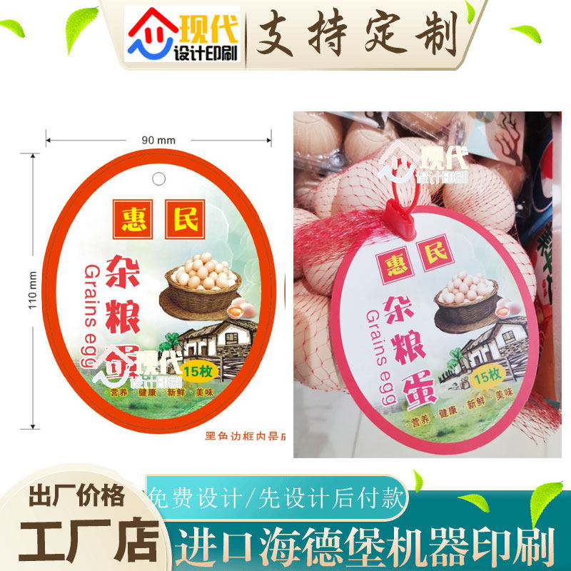 定制杂粮蛋吊牌标签土鸡蛋不干胶设计食品铜版纸光膜挂牌商标印刷