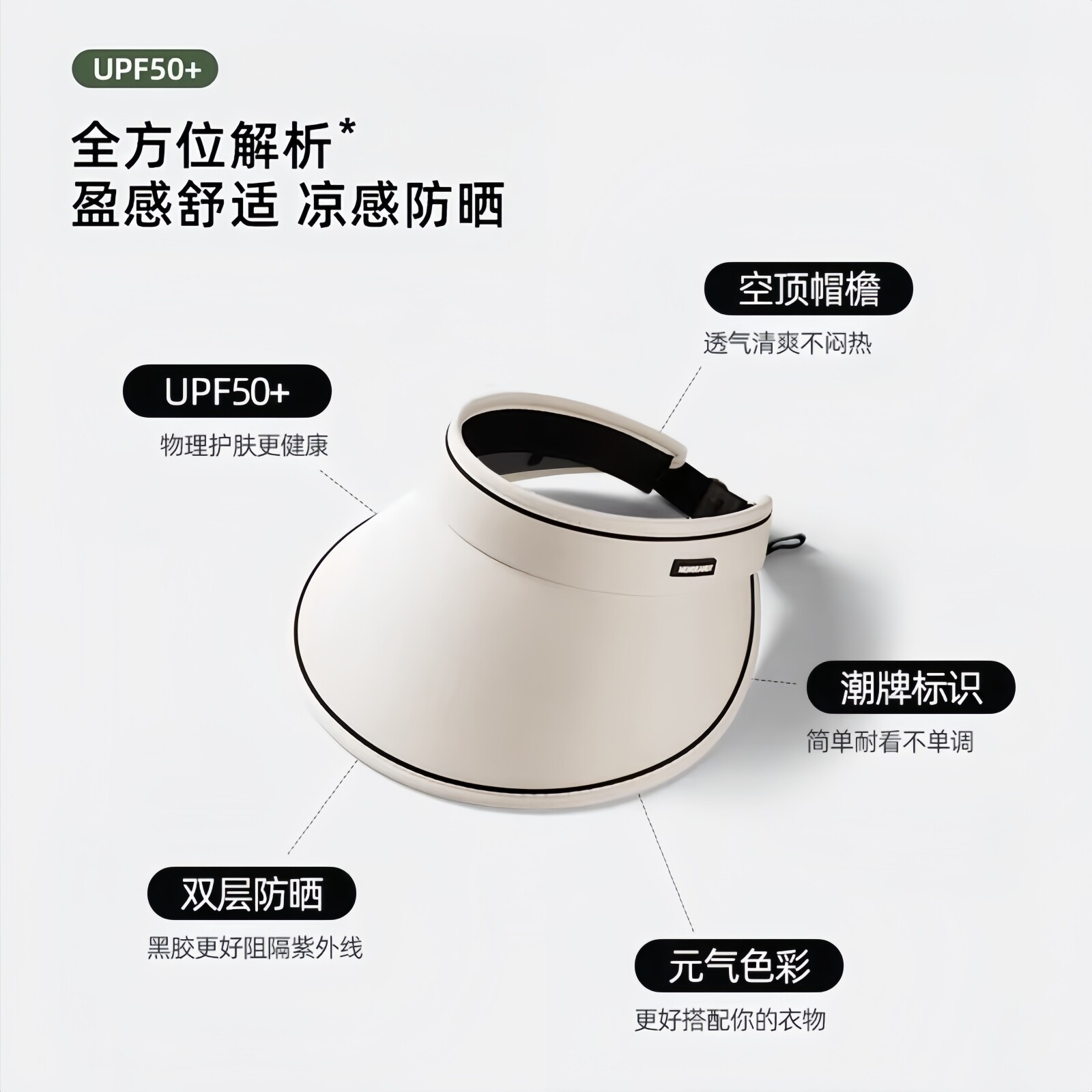 蕉下轻量蛋卷帽可折叠户外遮阳防紫外线侧脸空顶太阳帽女士防晒帽