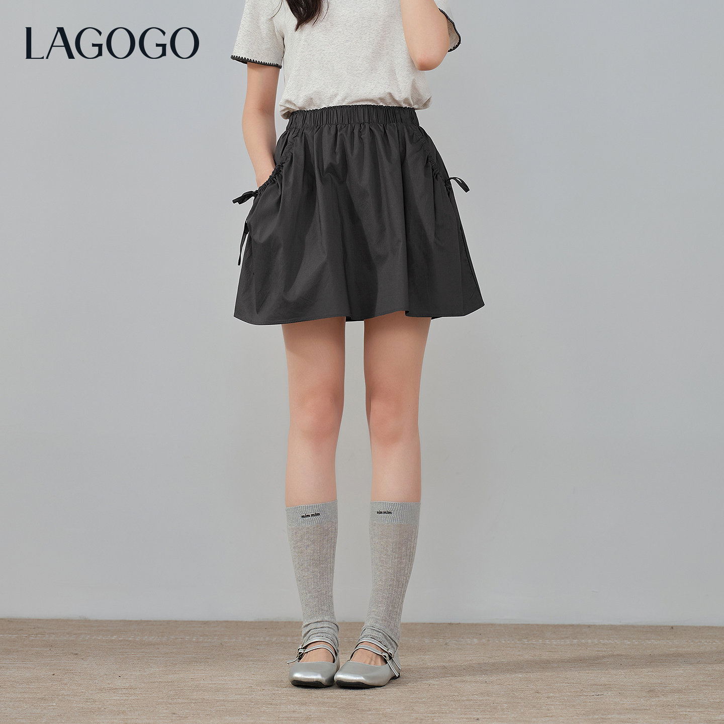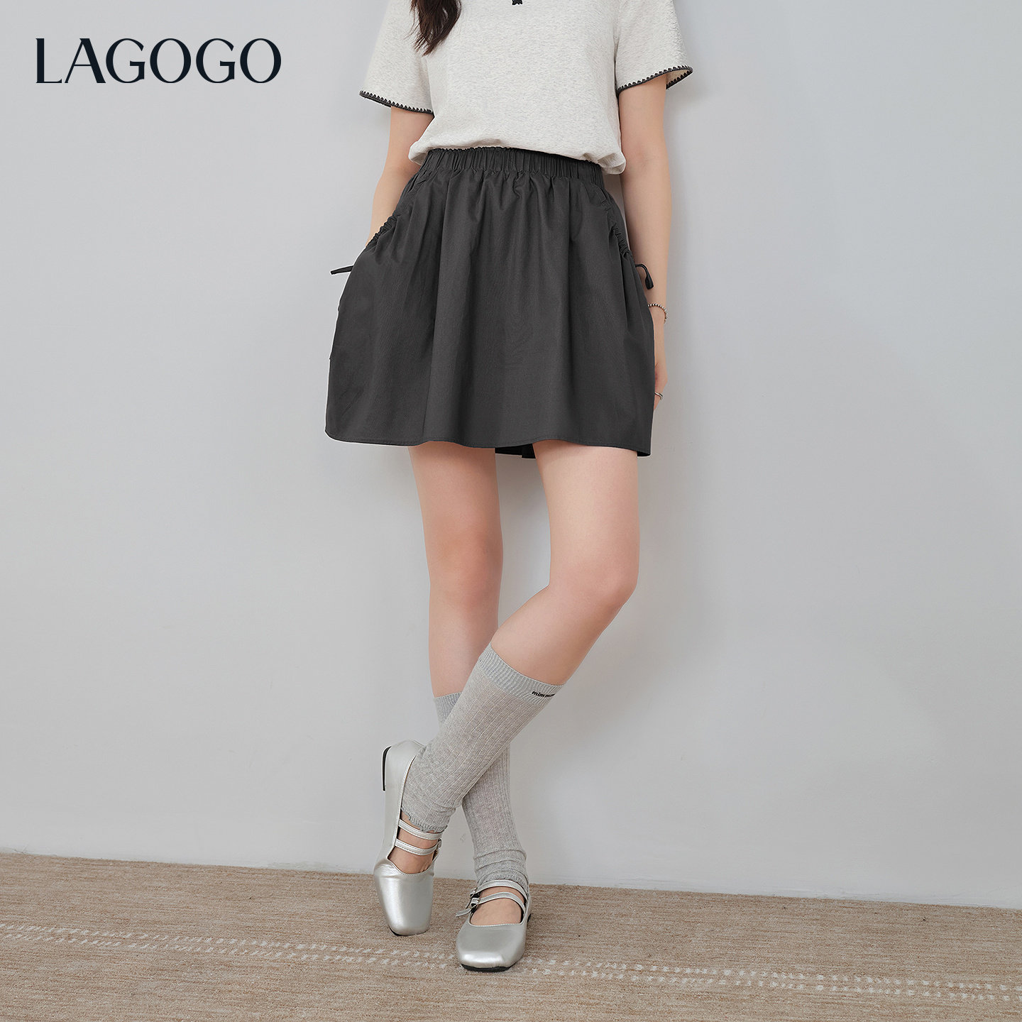 LAGOGO莱赛尔花苞半身裙女拉谷谷2026夏新款灰色小个子防走光短裙