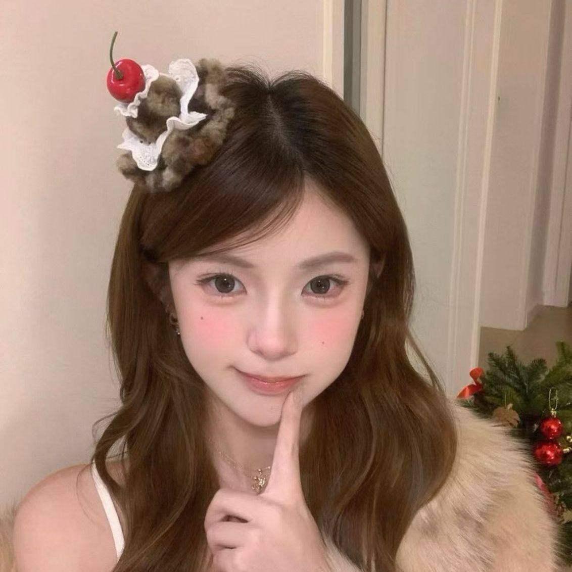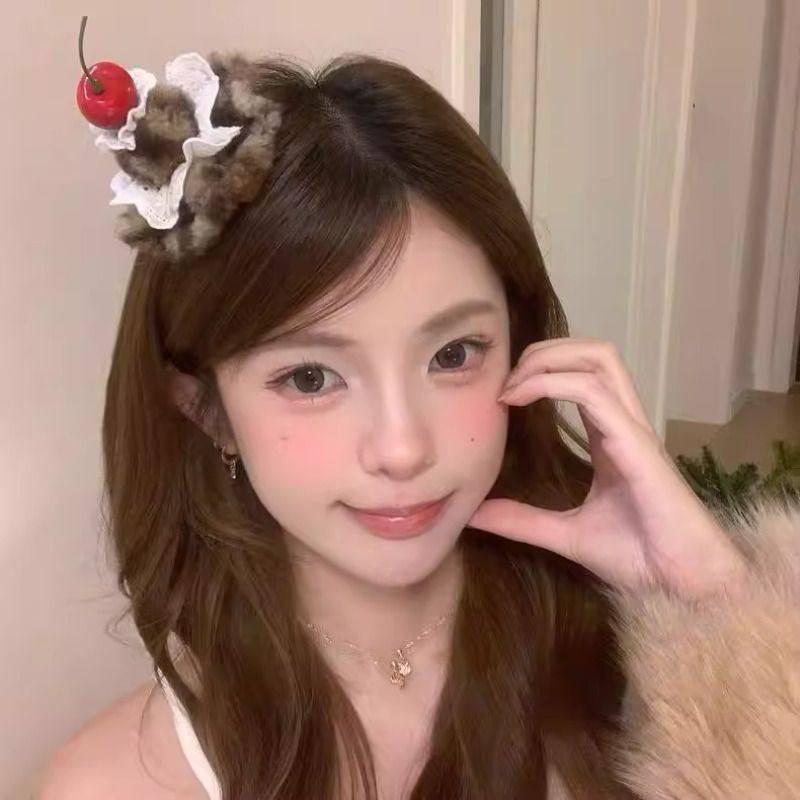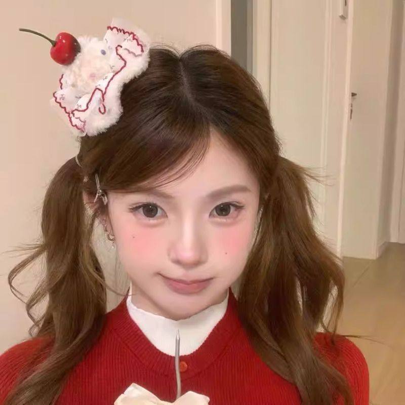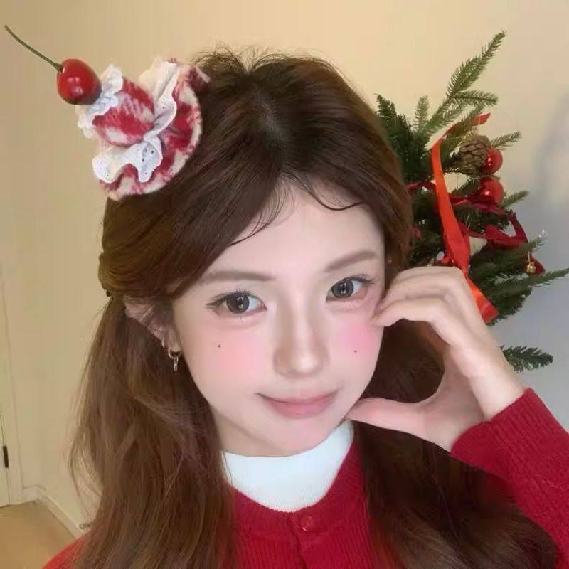 红色豹纹樱桃蛋糕发夹鸭嘴夹跨年新年氛围感拍照发饰发卡头饰发饰