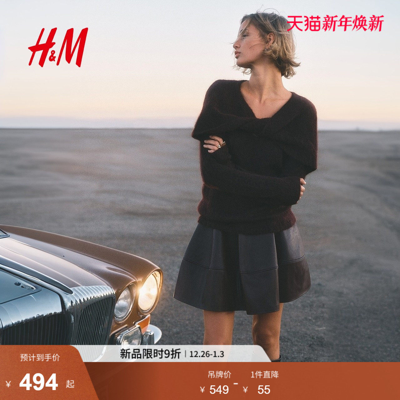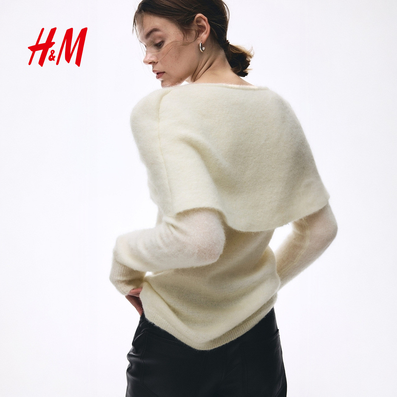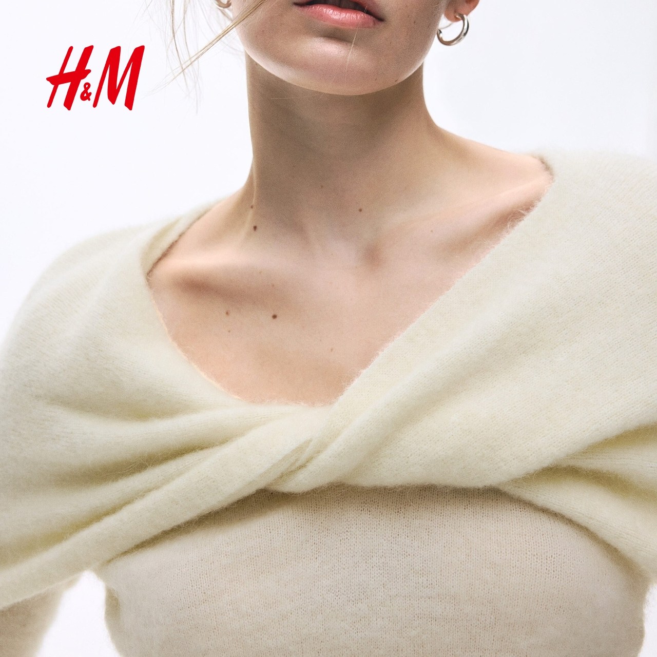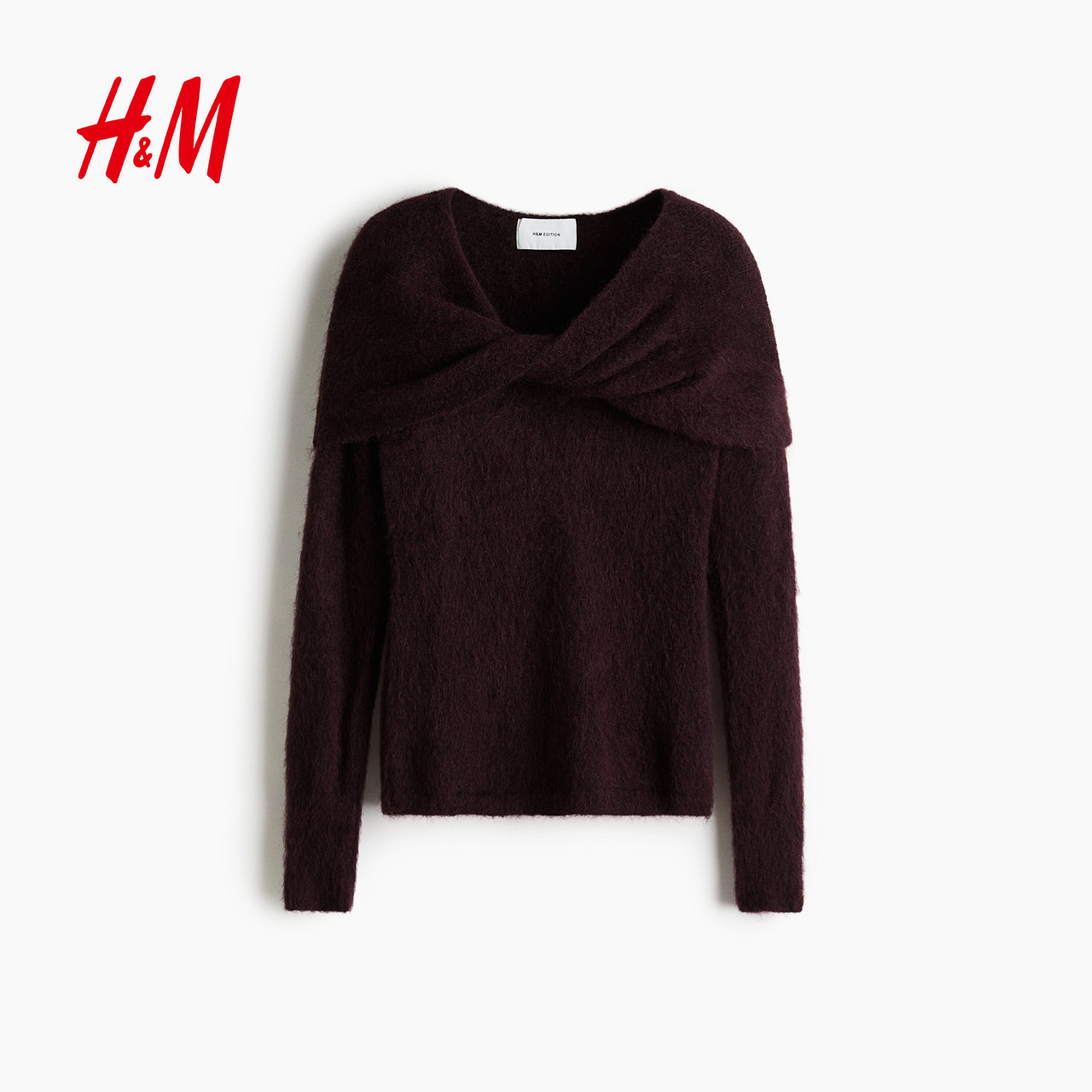 HM女装毛针织衫2025冬季新款时尚马海毛混纺扭饰气质上衣1316734
