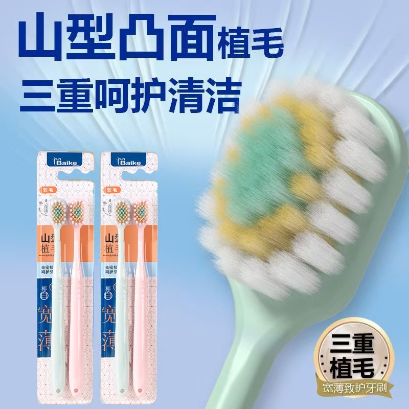 牙刷软毛宽头山型凸面超细薄成人家用护龈牙缝清洁家庭装牙齿牙龈