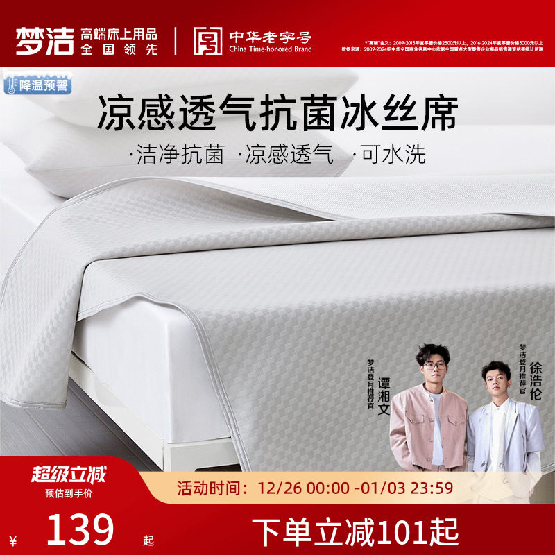 洁丽雅凉席夏天2025新款可机洗夏季学生宿舍单人席子冰丝席床笠款