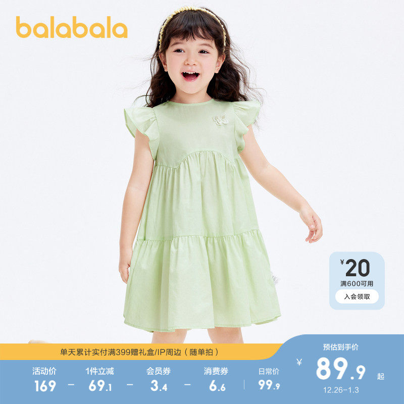 巴拉巴拉童装女童连衣裙儿童裙子小童宝宝夏装新款飞袖碎花裙文艺
