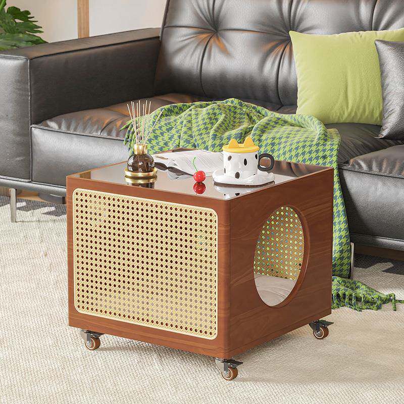 猫窝茶几人宠共用松木家具猫窝狗窝实木藤编卧室落地边几床头柜