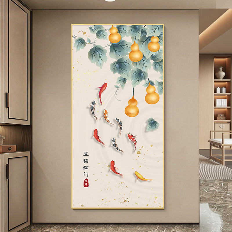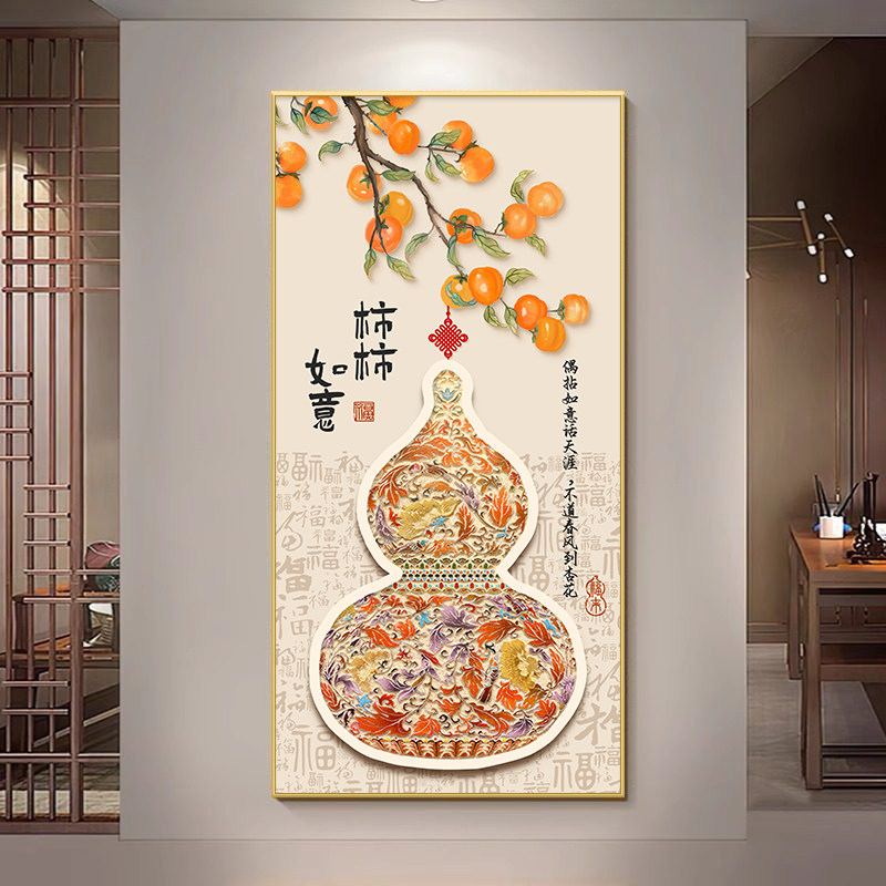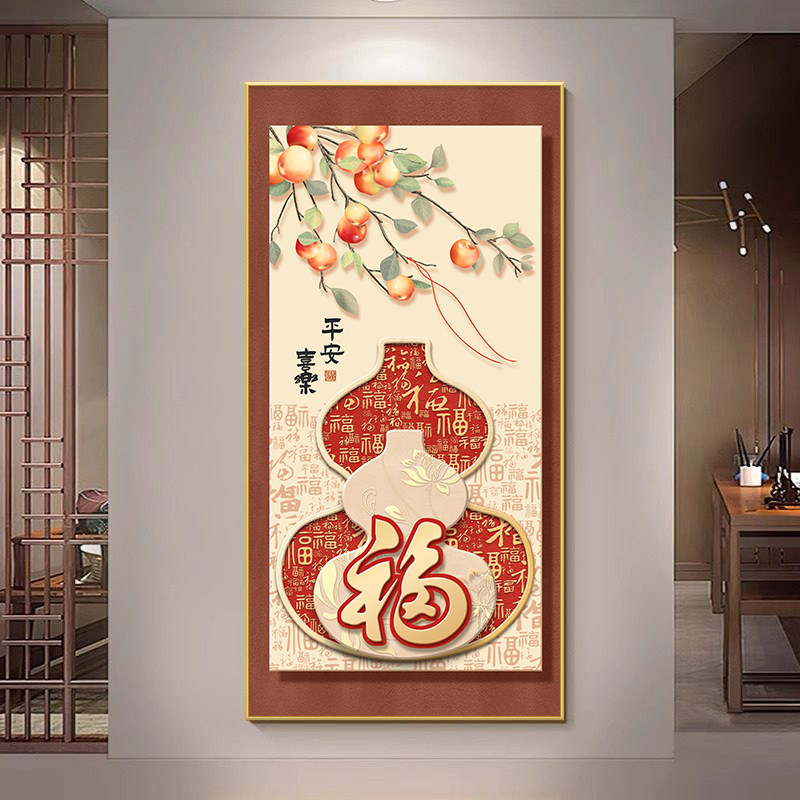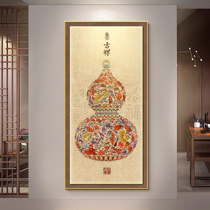 玄关葫芦挂画入户装饰画对门正新中式过道壁画客厅墙面立体防水