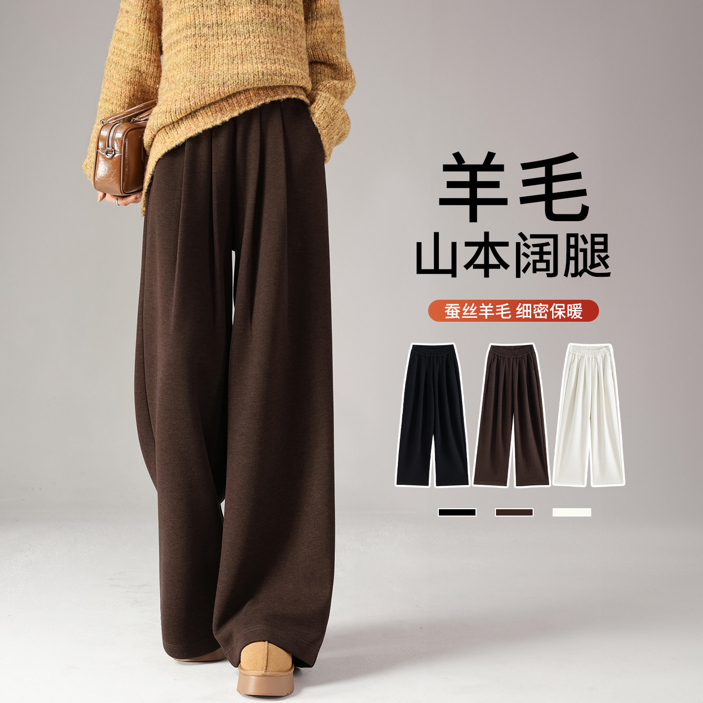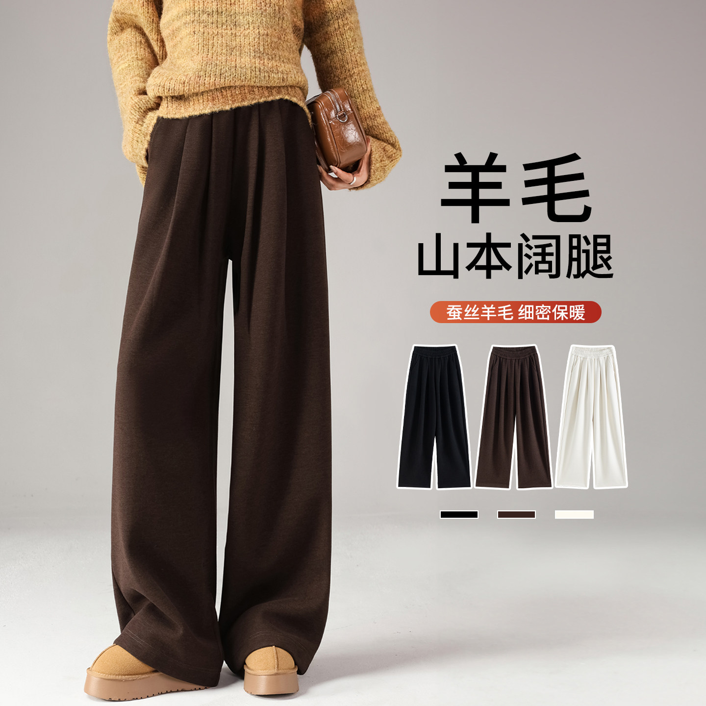 加绒阔腿裤女秋冬2026新款高腰垂感羊毛直筒