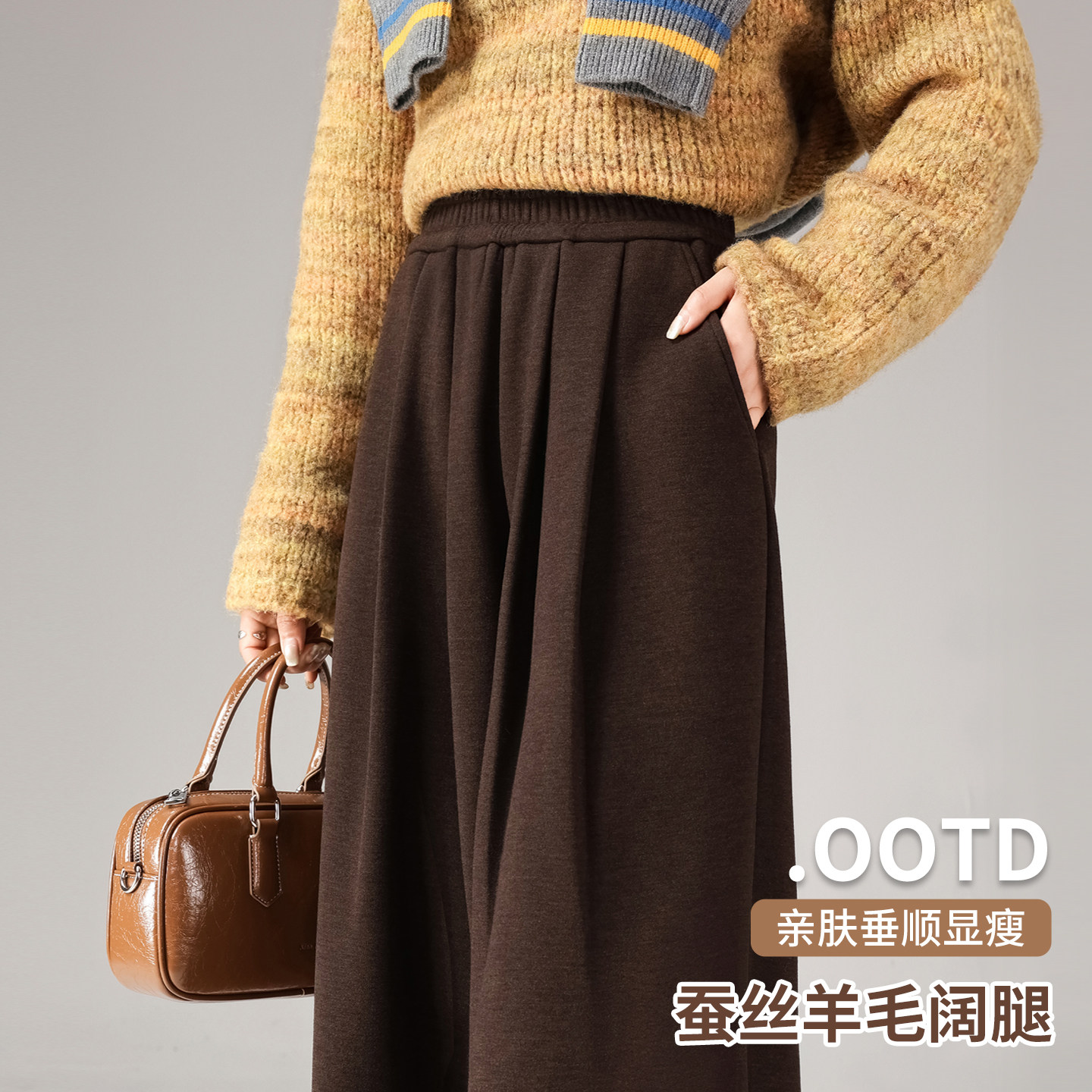 唐狮DESSO秋冬新款糯米裤高腰垂感宽松加绒直筒阔腿裤5