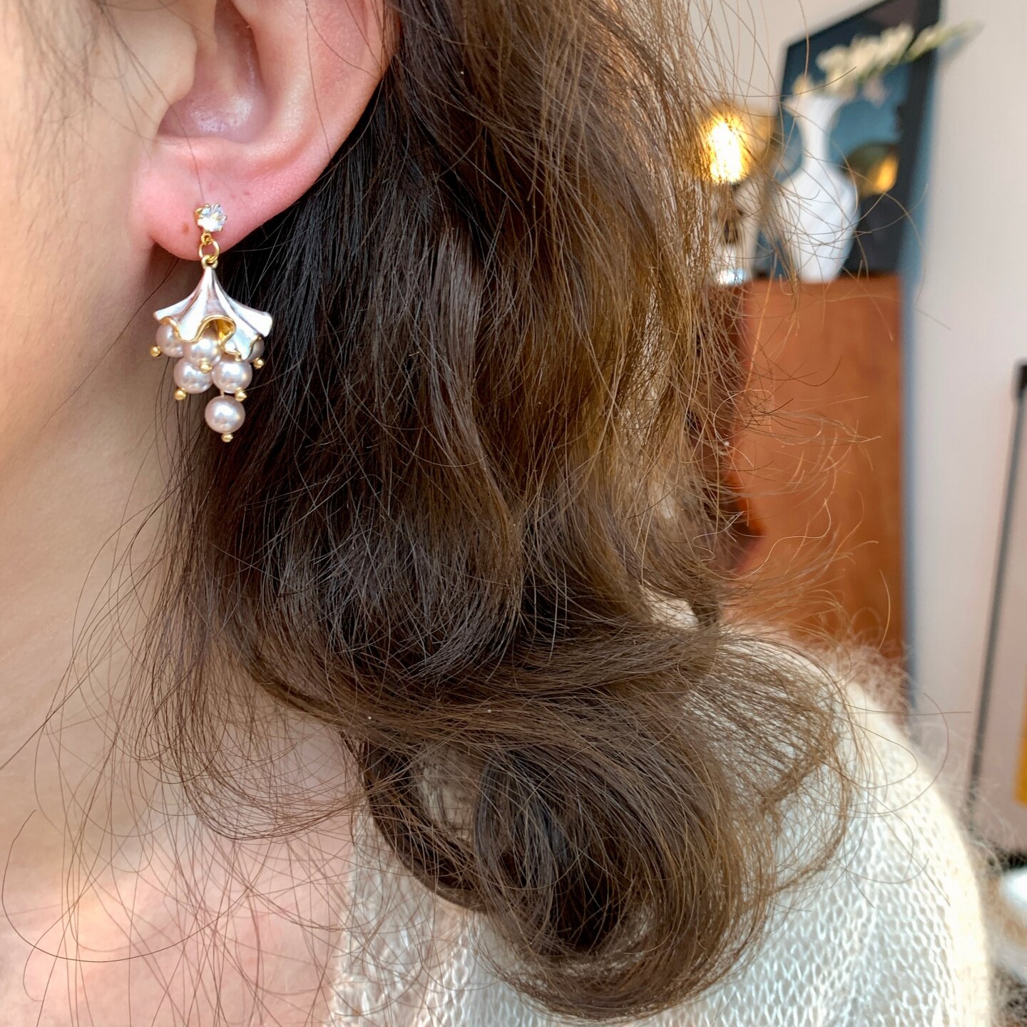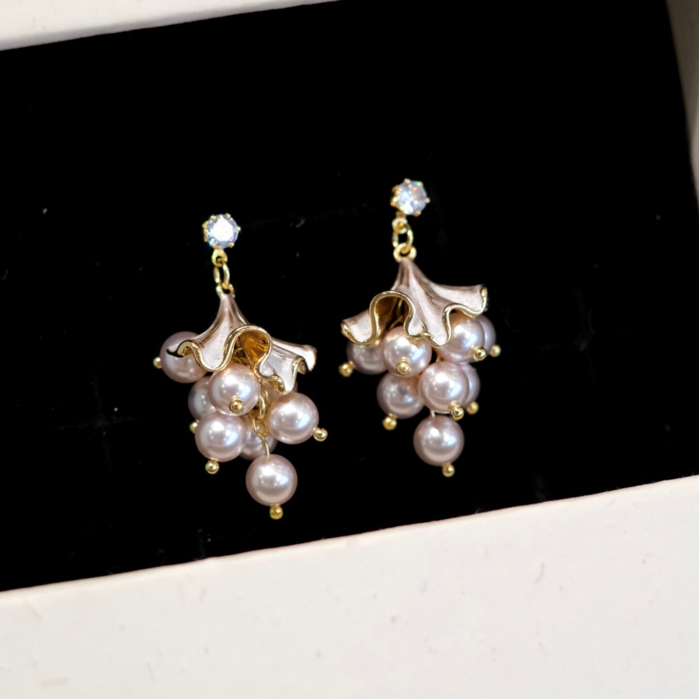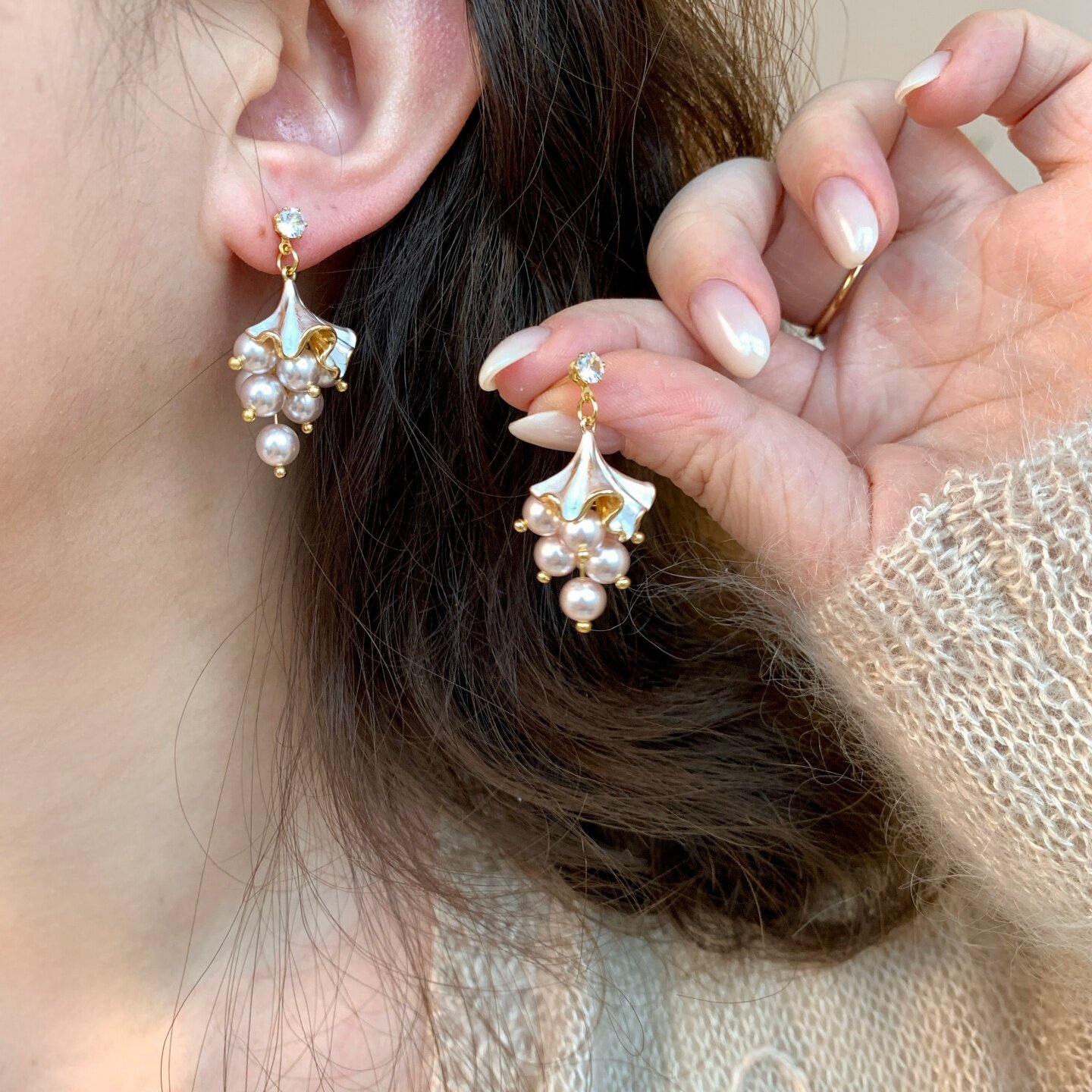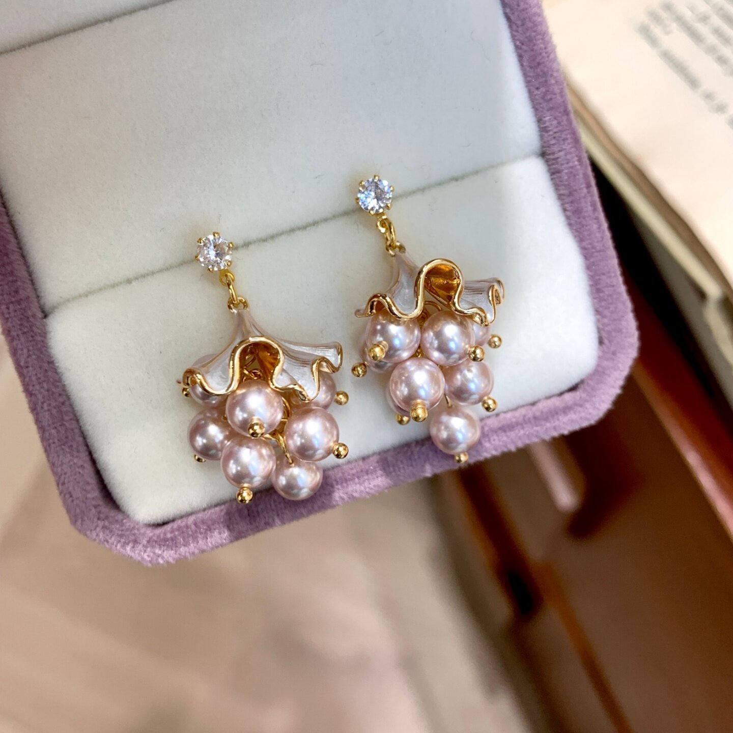 《银杏雨》复古优雅温柔粉紫珍珠葡萄串春夏流苏耳夹耳饰耳钉耳环