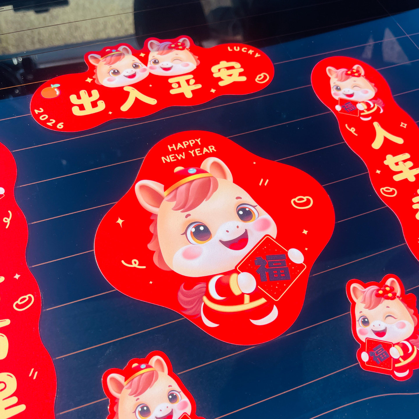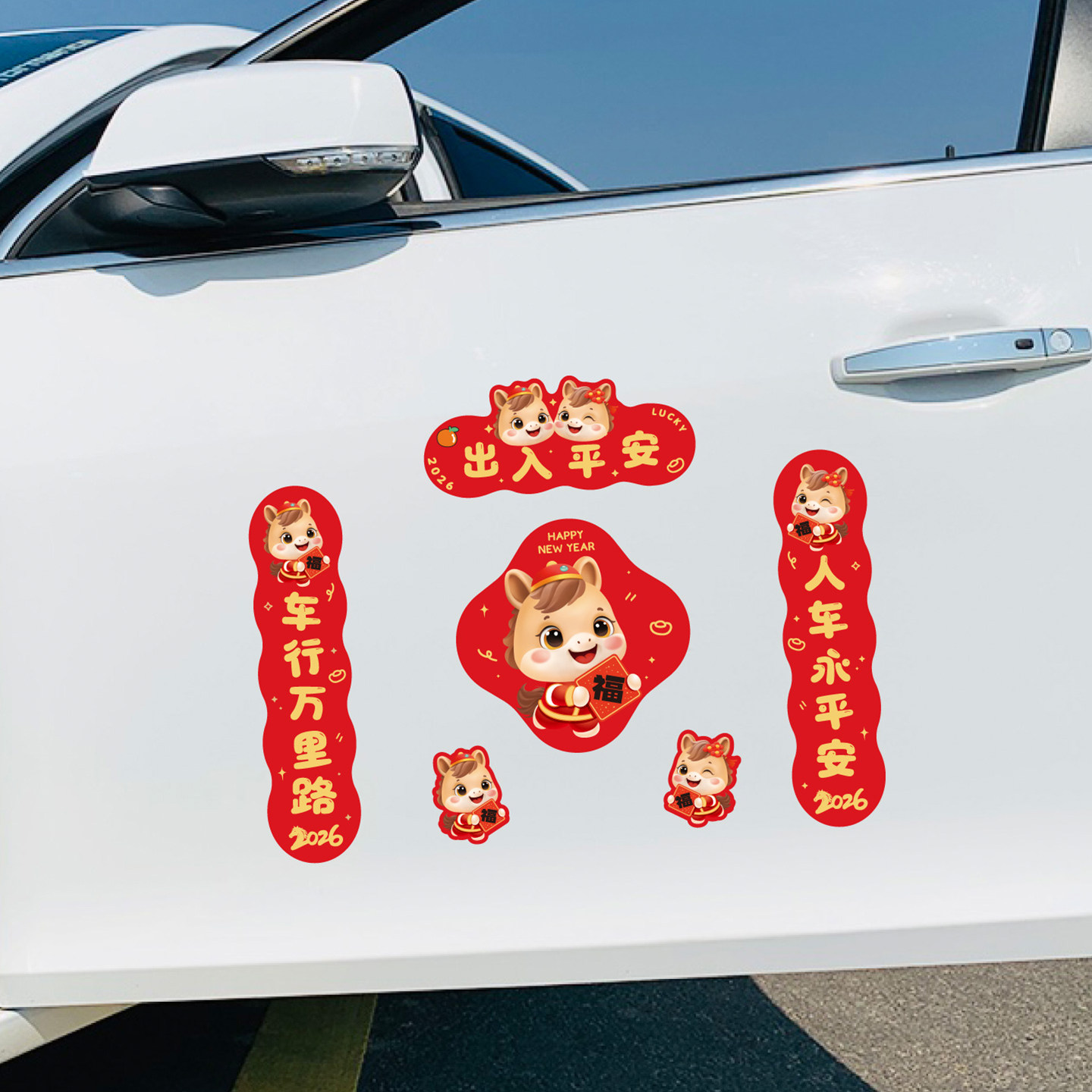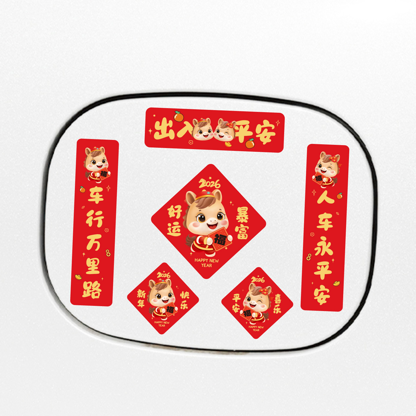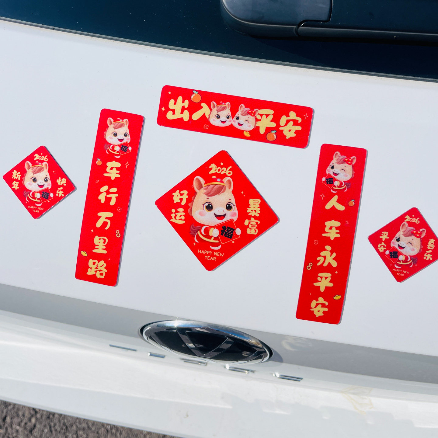 2026马年新年汽车对联创意磁吸春联贴纸电动车冰箱门油箱盖福车贴