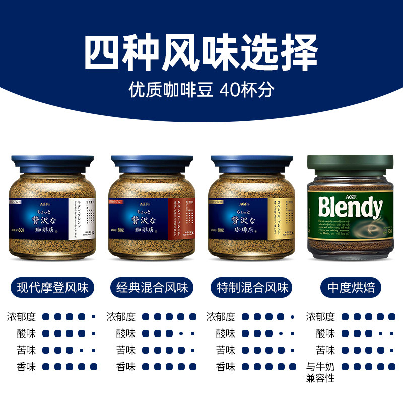 【自营】日本agf咖啡蓝棕蓝金黑咖啡速溶咖啡无蔗糖冻干咖啡粉80g