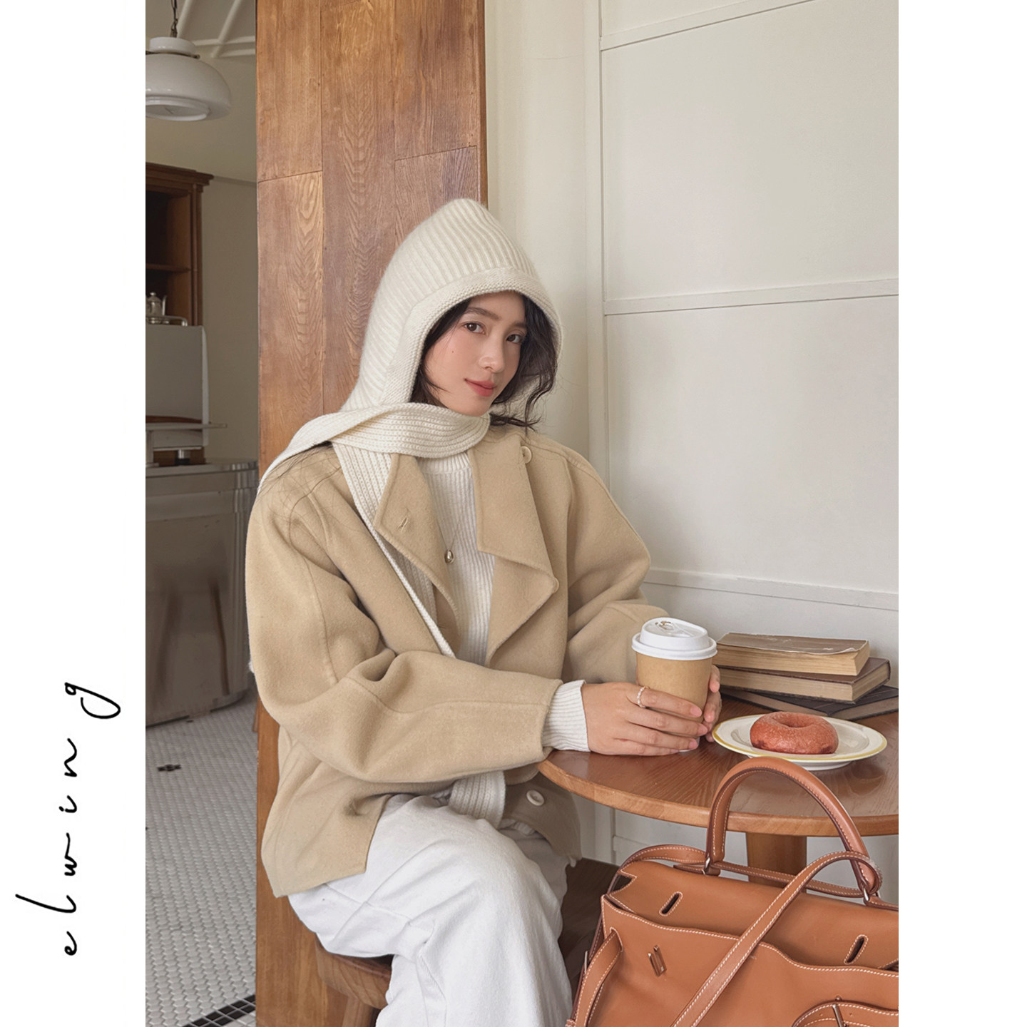 Elwing原创纯羊毛围巾一体帽外搭冬季防风保暖时尚围脖针织帽子