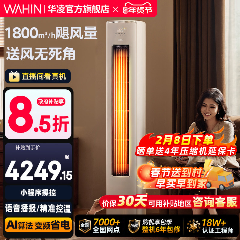 华凌空调神机二代3匹家用柜机一级72客厅立式智能超省电双排铜管