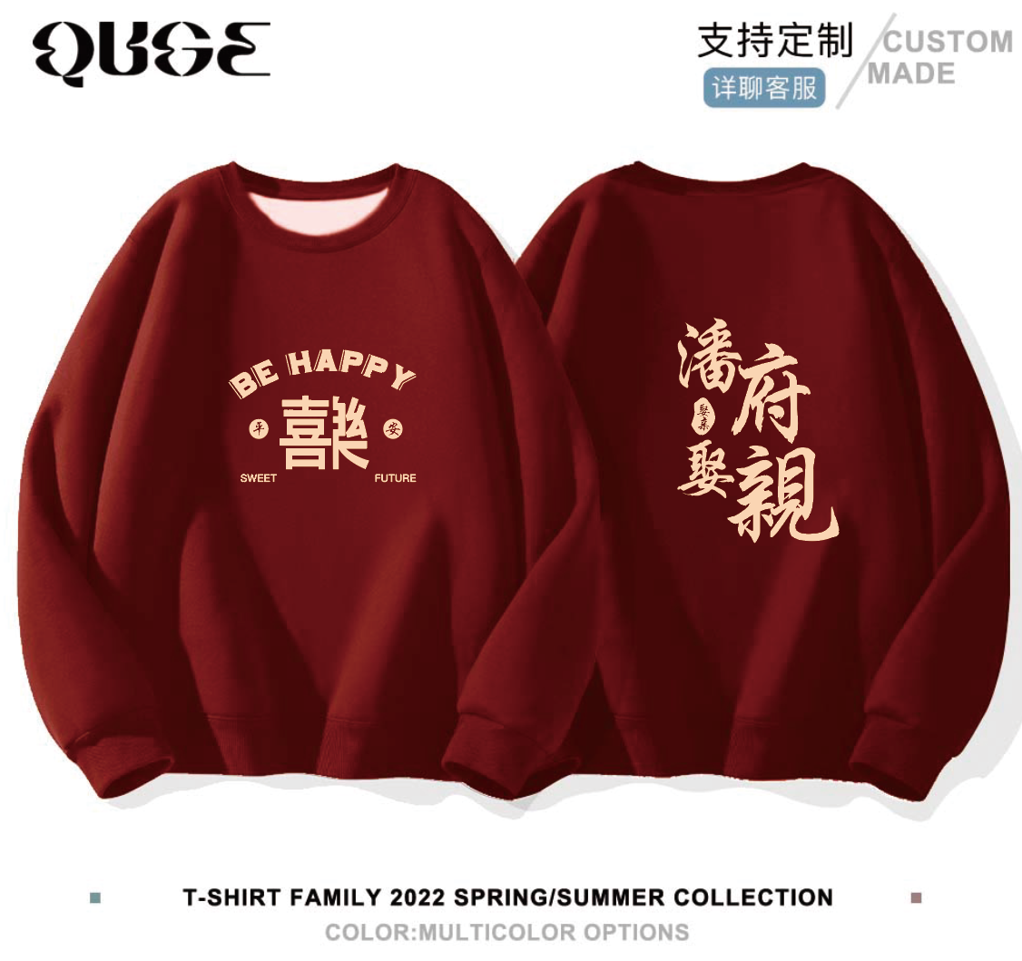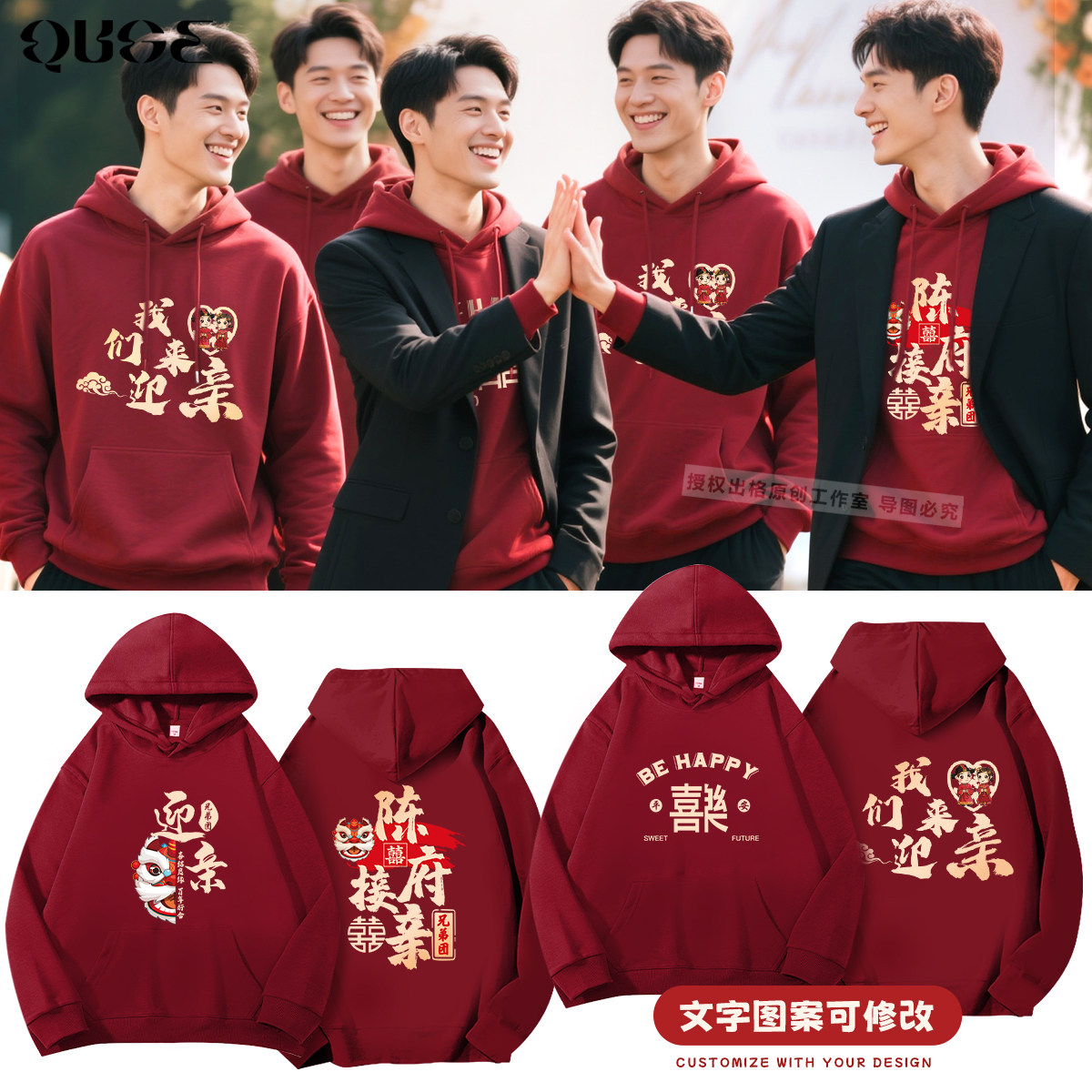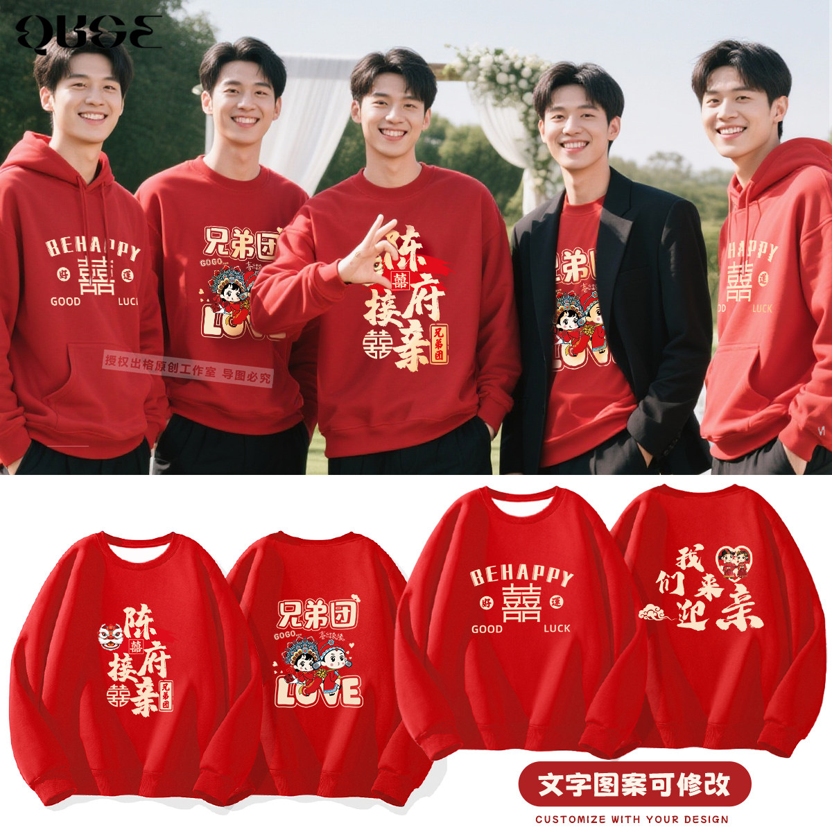 马年抢亲兄弟闺蜜婚礼迎接红色囍结婚伴郎伴娘服团购年会卫衣定制