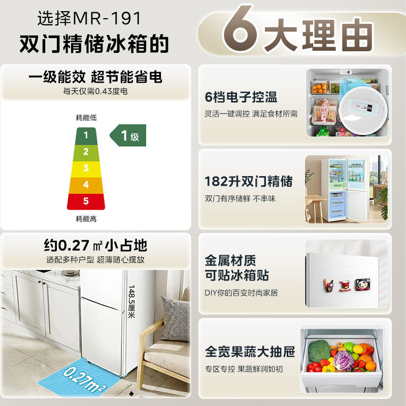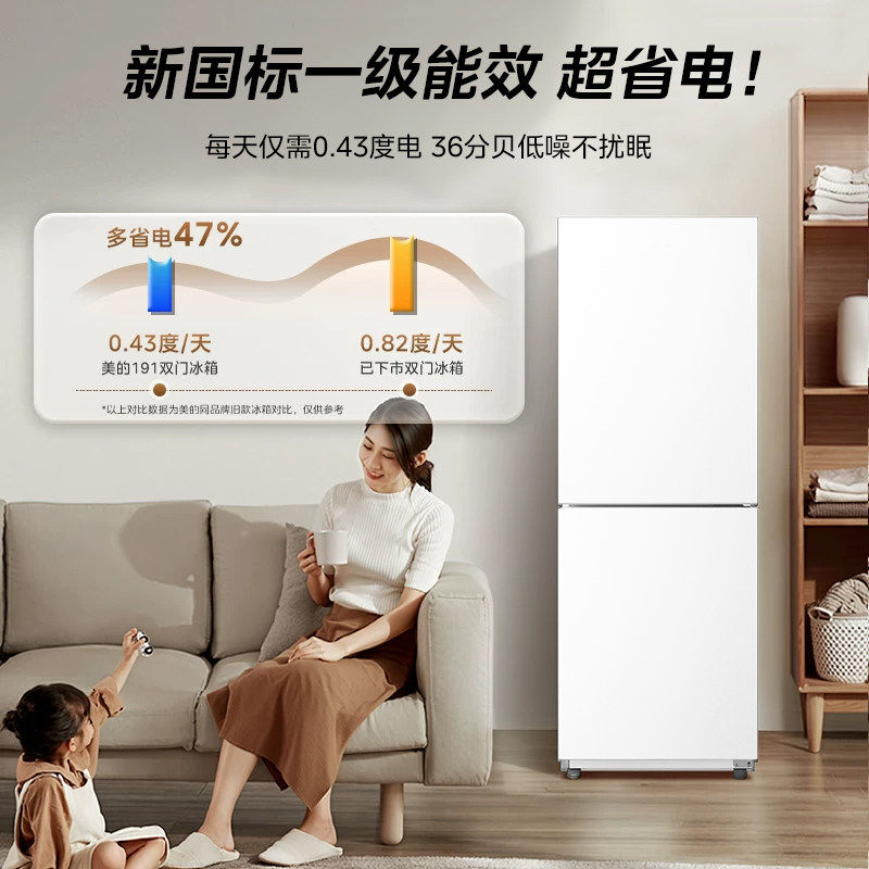 美的191租房宿舍节能省电低噪冷冻冷藏小型家用两门一级能效冰箱