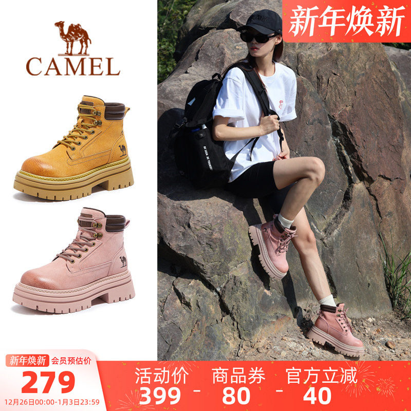 骆驼马丁靴女鞋2025秋季新款户外英伦大黄靴女款厚底短靴工装靴子