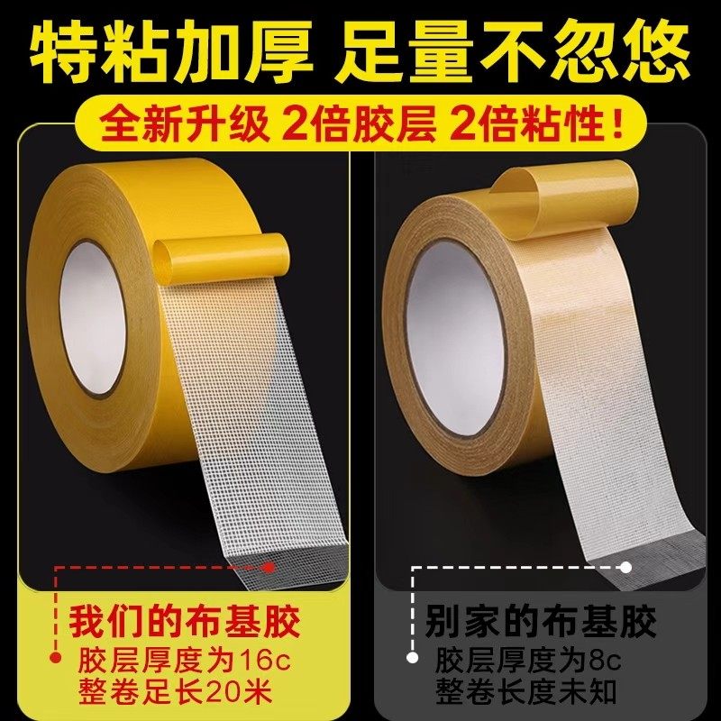 网格双面胶高粘度不留痕福字强力固定贴粘地毯春联对联专用透明无痕墙面不留胶地板地垫门对拼接布基胶带神器