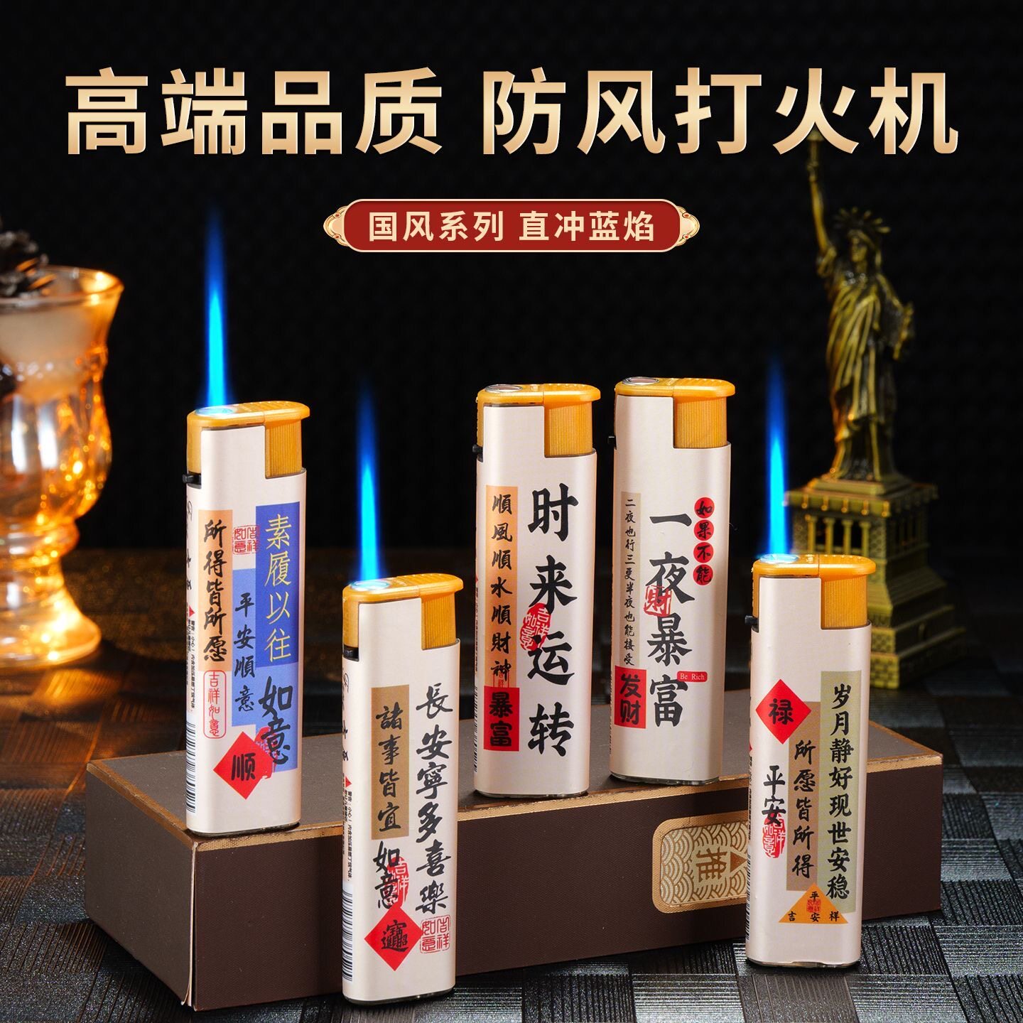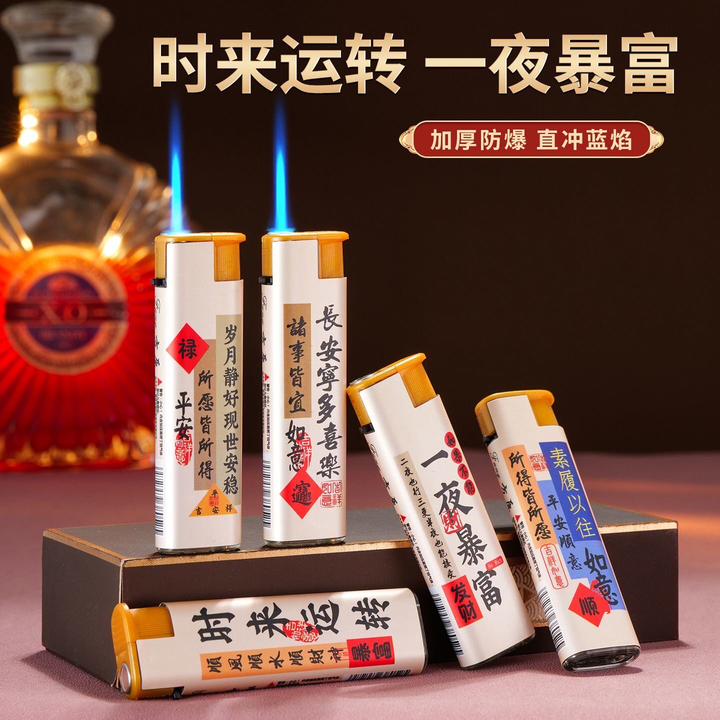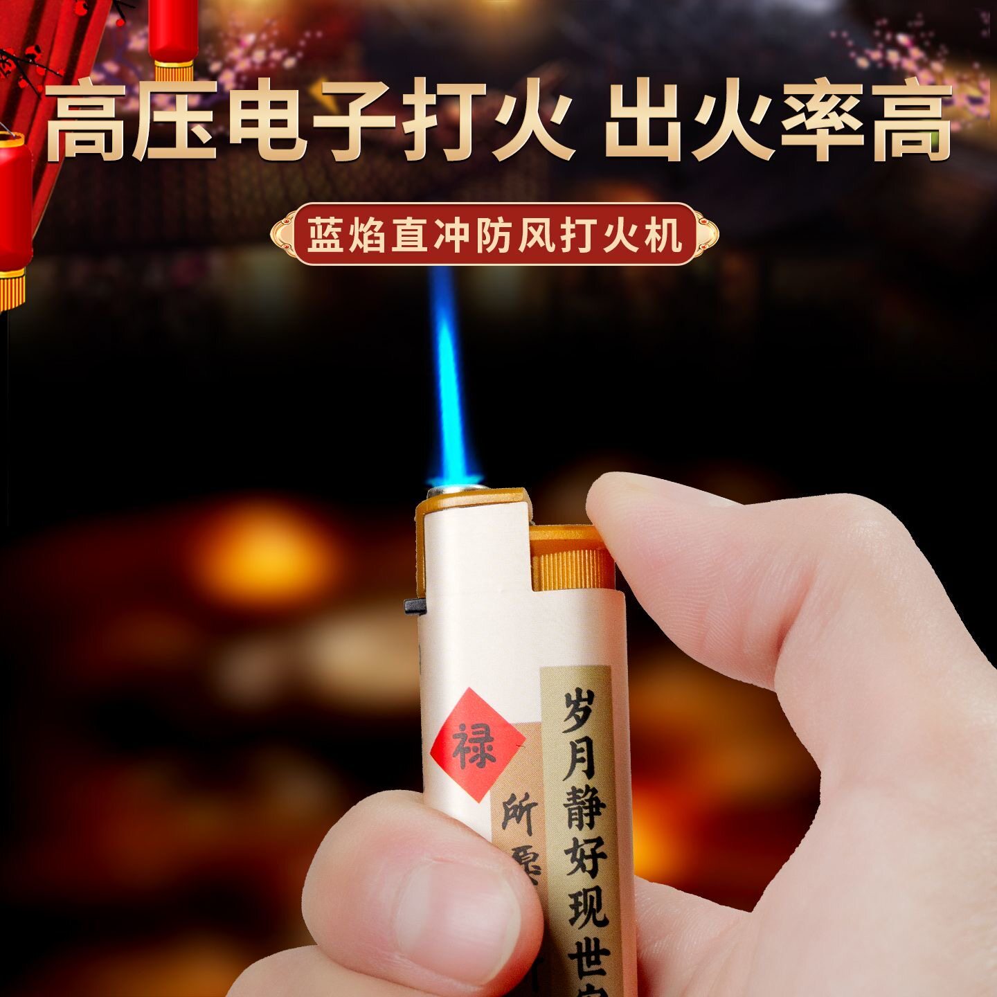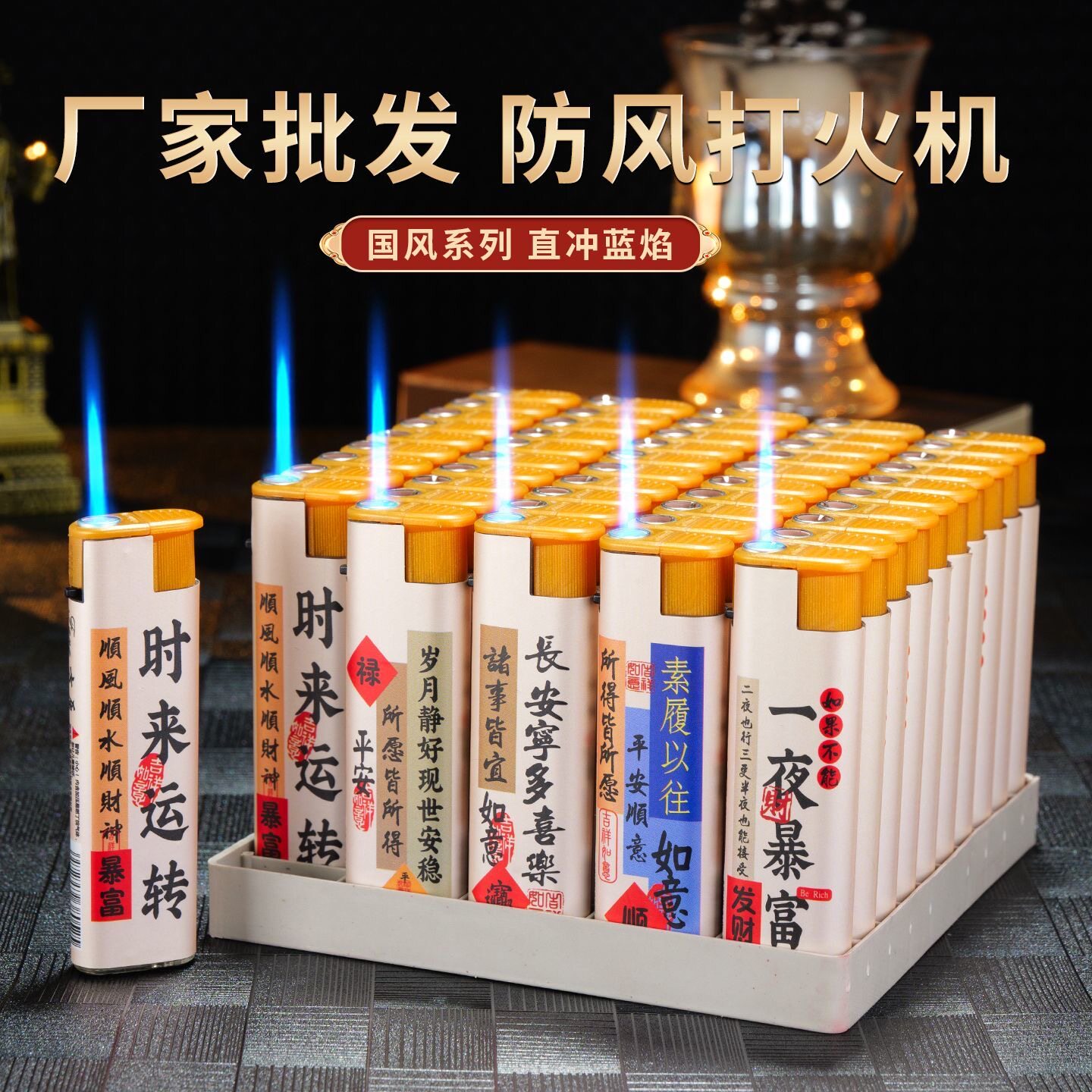 时来运转直冲防风耐用一次性打火机精美贴画家用商超便利店批发