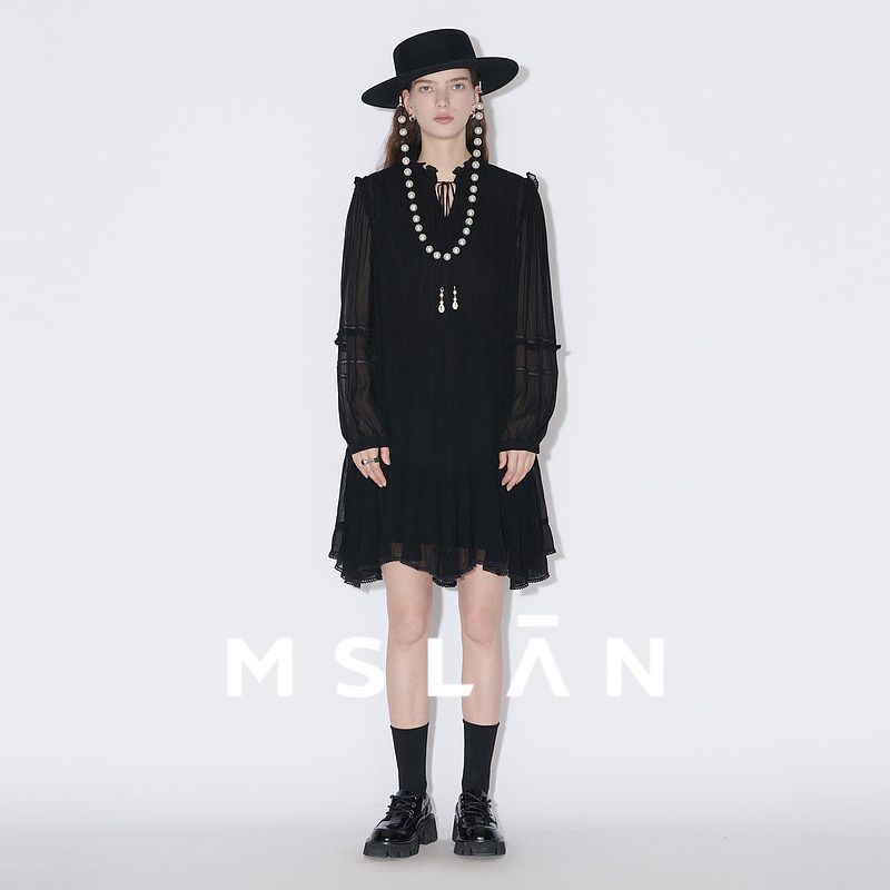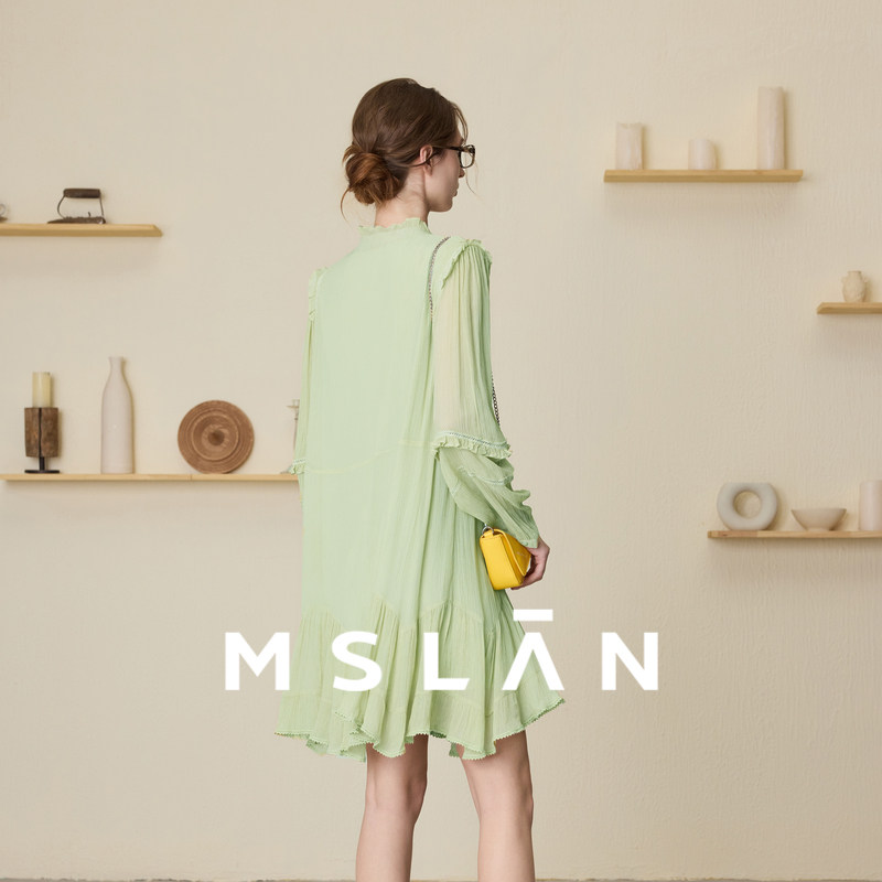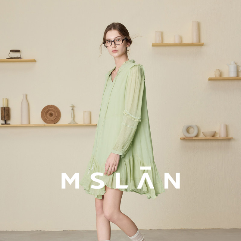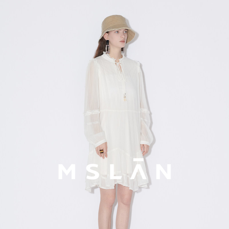 MSLAN商场同款春季法式浪漫肌理感少女风花边连衣裙MEAE4102