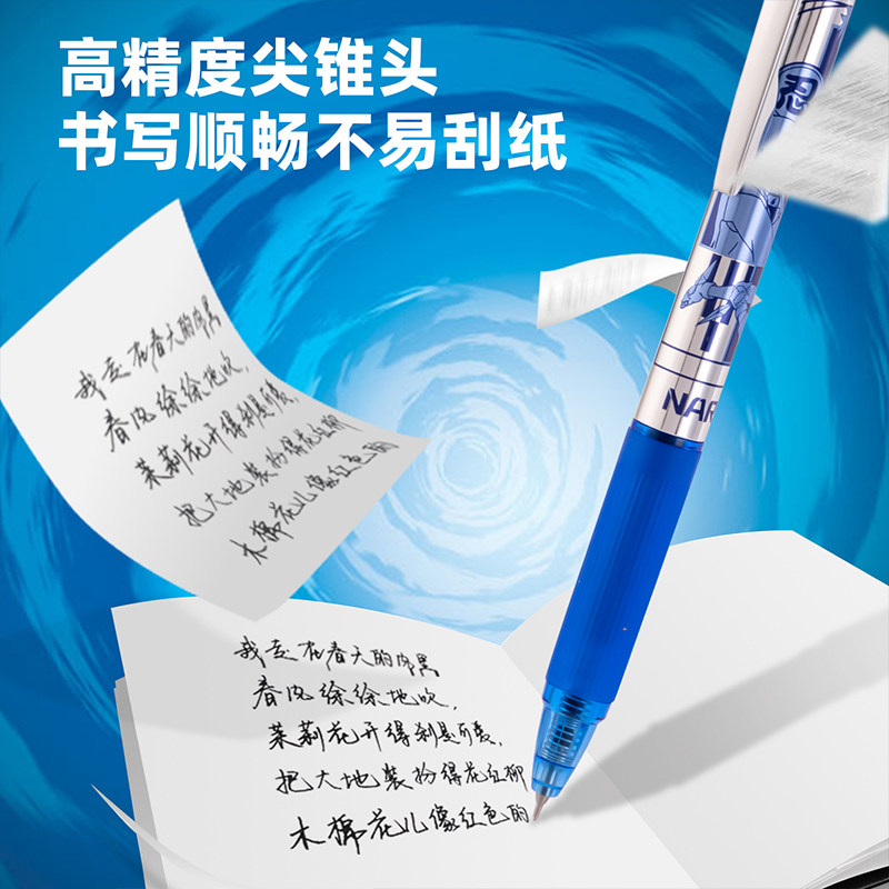 得力火影忍者联名限定按动速干中性笔中小学生动漫尖锥头笔尖按压式备考刷题签字笔日系高颜值大容量黑色水笔
