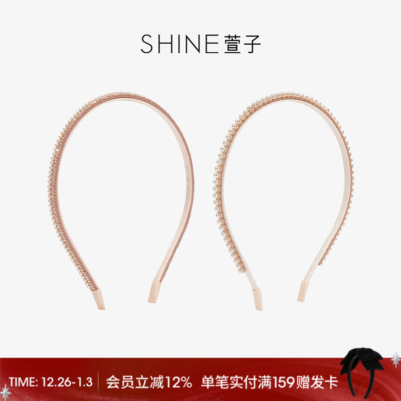 SHINE萱子饰品花影流光系列精致粉色珍珠细边发箍轻奢感发卡头箍