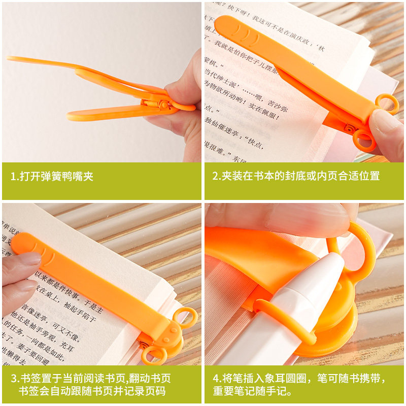 新款随页书签自动跟页随阅硅胶带笔插挂笔阅读工具多功能简约书签