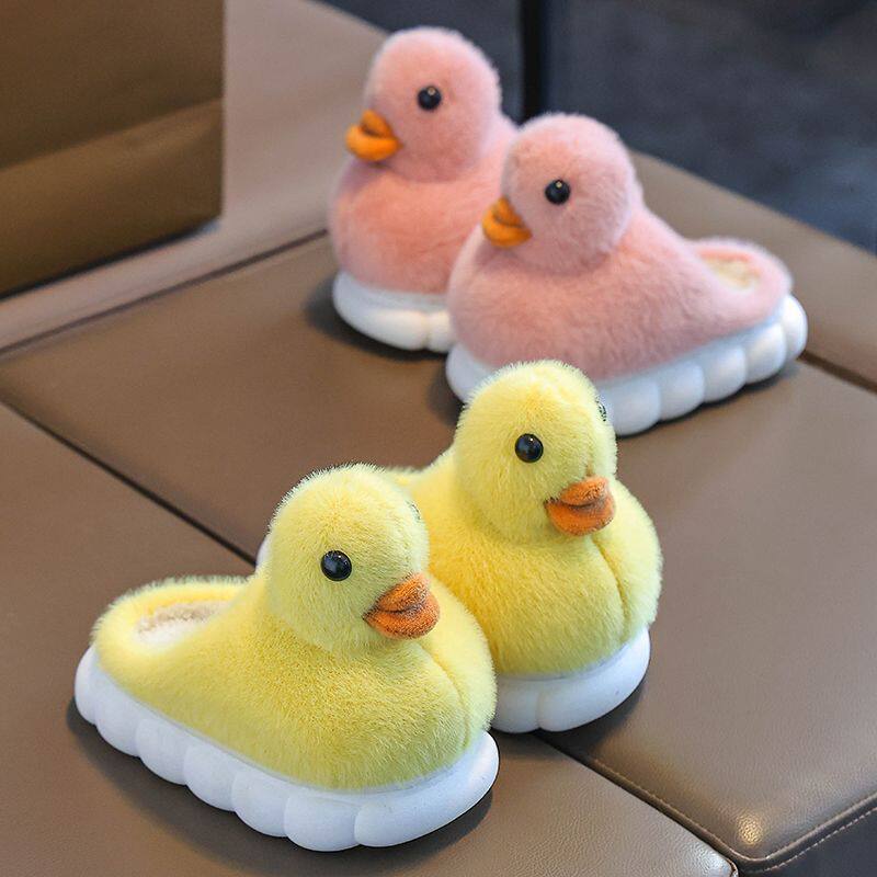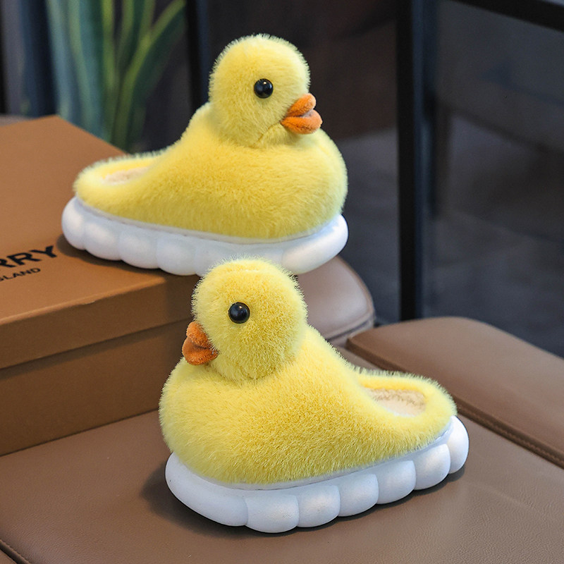 拖鞋儿童冬季新款男童小黄鸭防滑居家保暖1-3岁宝宝棉拖毛绒红色