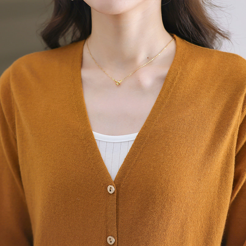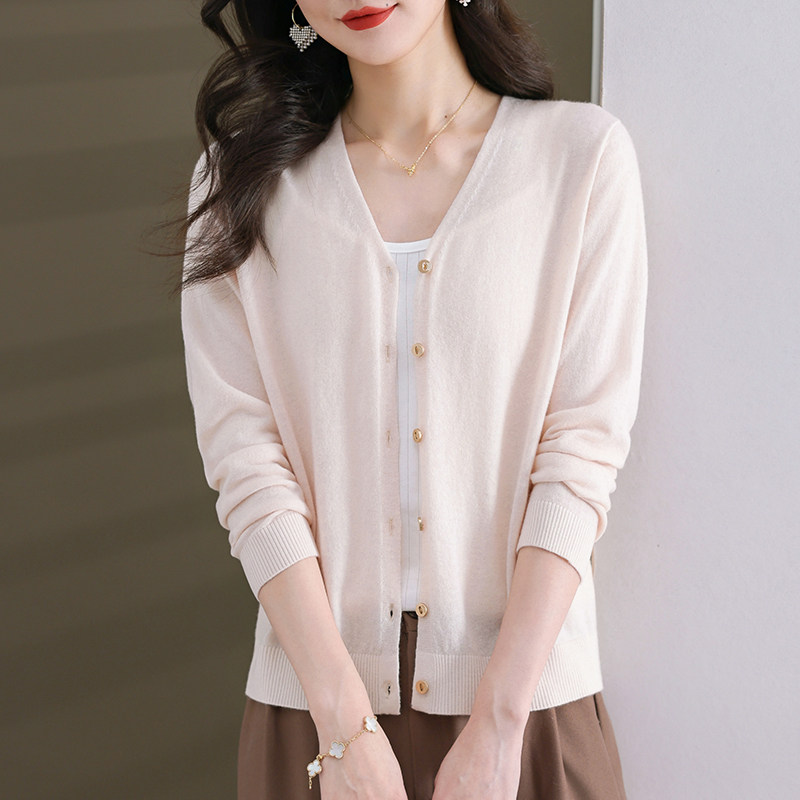 反季清仓春秋新款V领羊绒开衫女外搭纯色大码毛衣打底针织衫外搭
