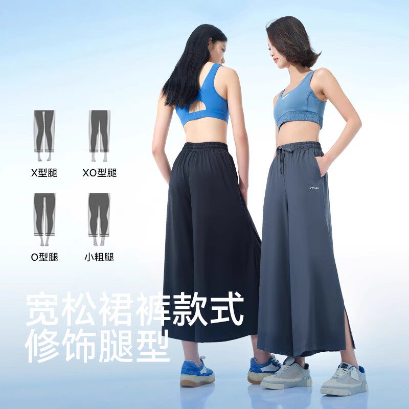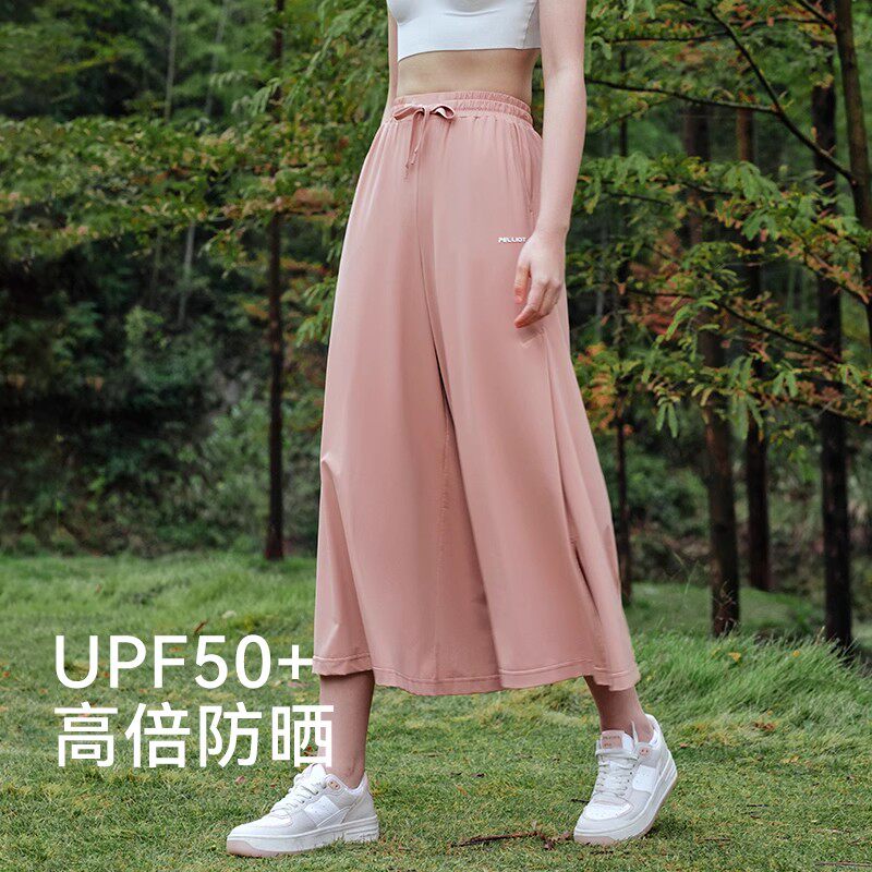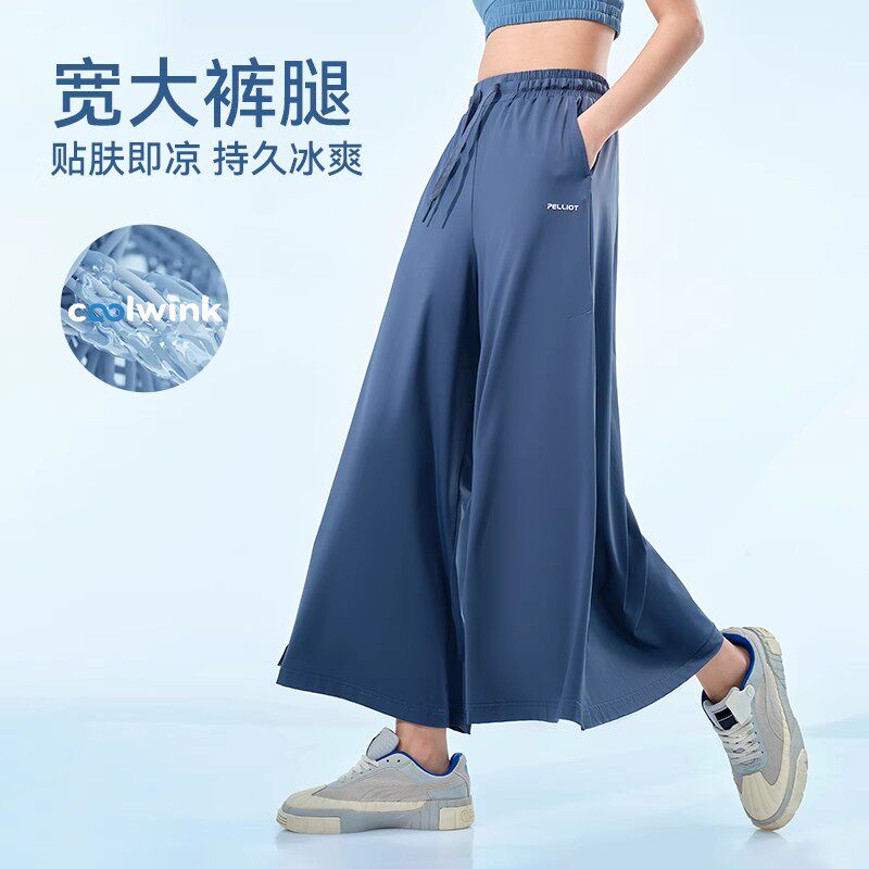 伯希和冰丝防晒裤女夏季薄款宽松休闲裤子垂感显瘦开叉阔腿裙裤