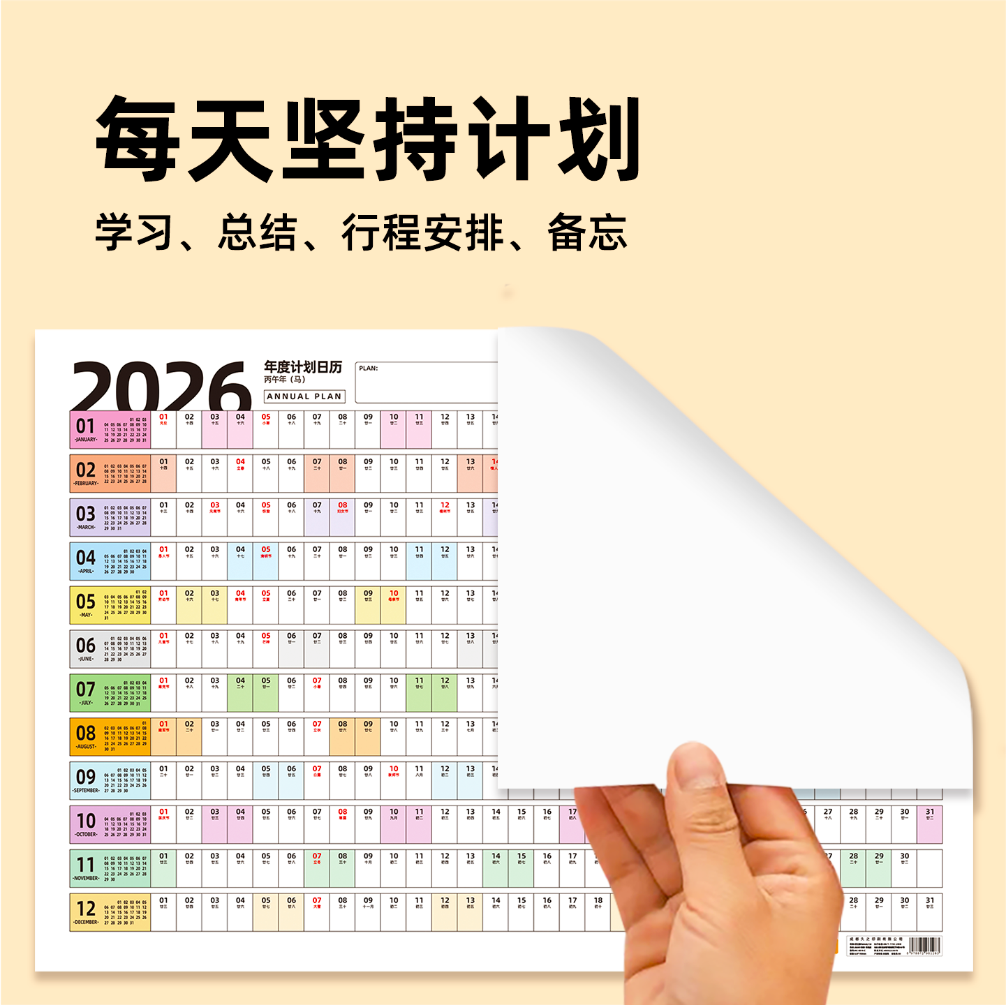 2026年日历台历纸年历单页单张马年日程年历表计划表桌面年历纸365天全年计事表年计划创意简约批发定制挂墙
