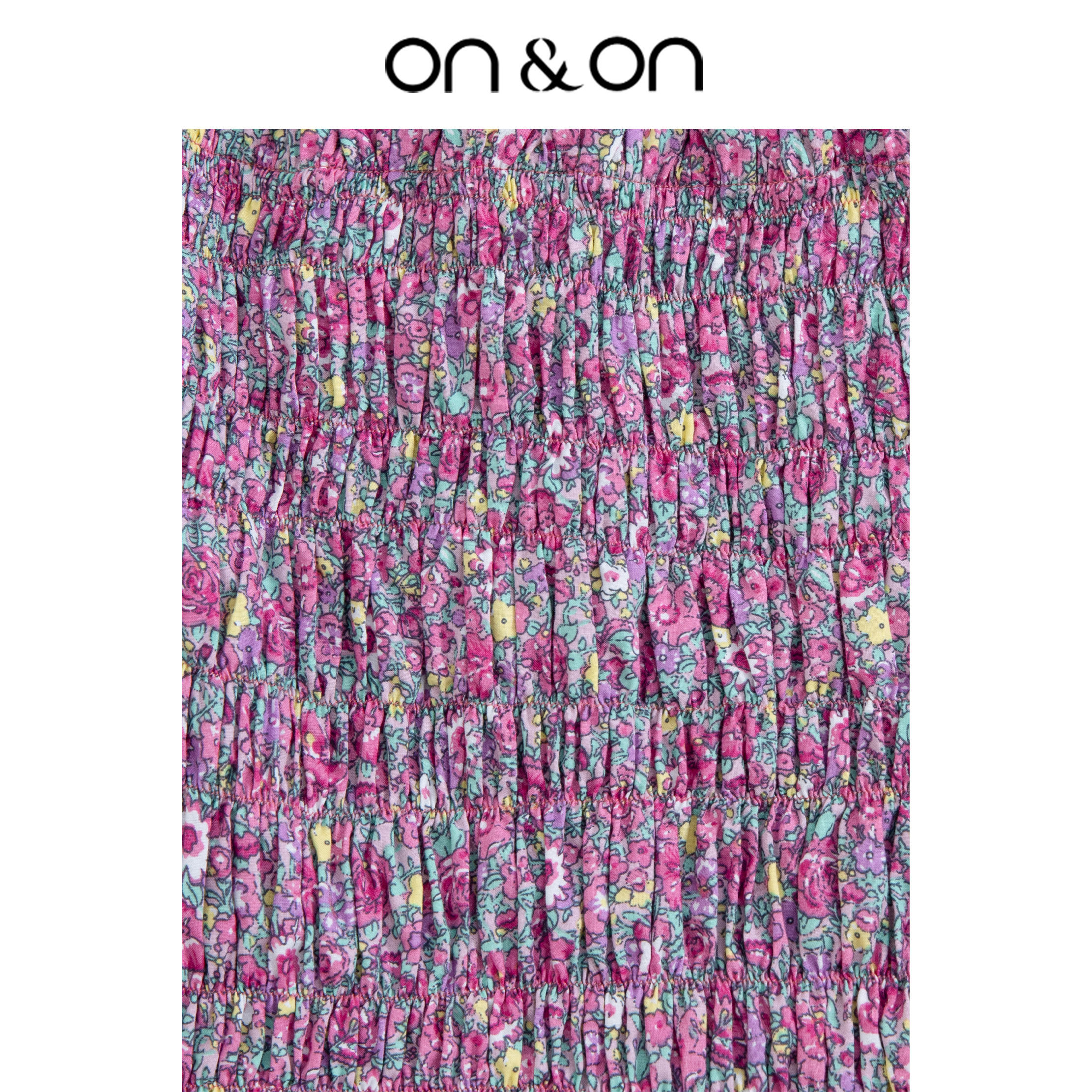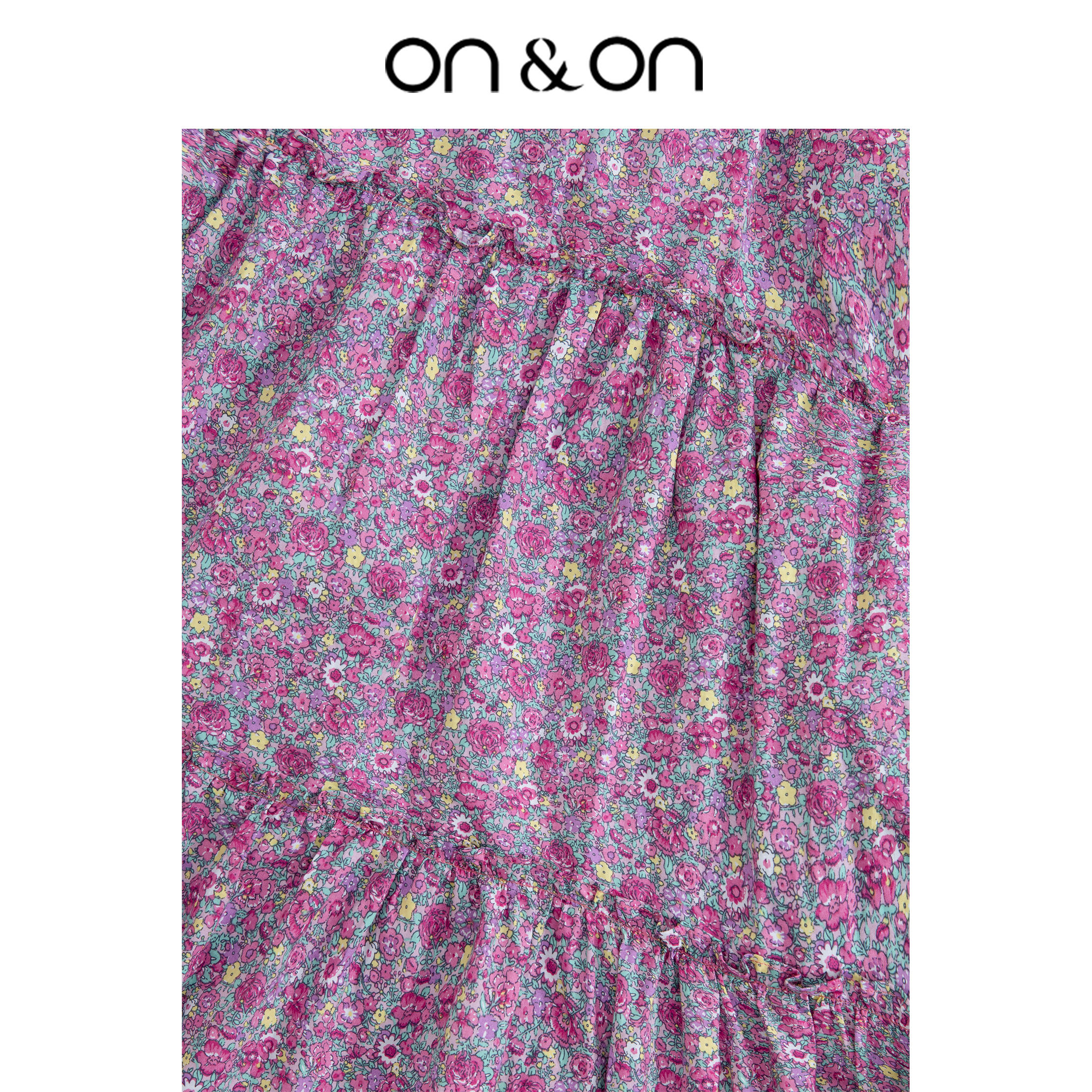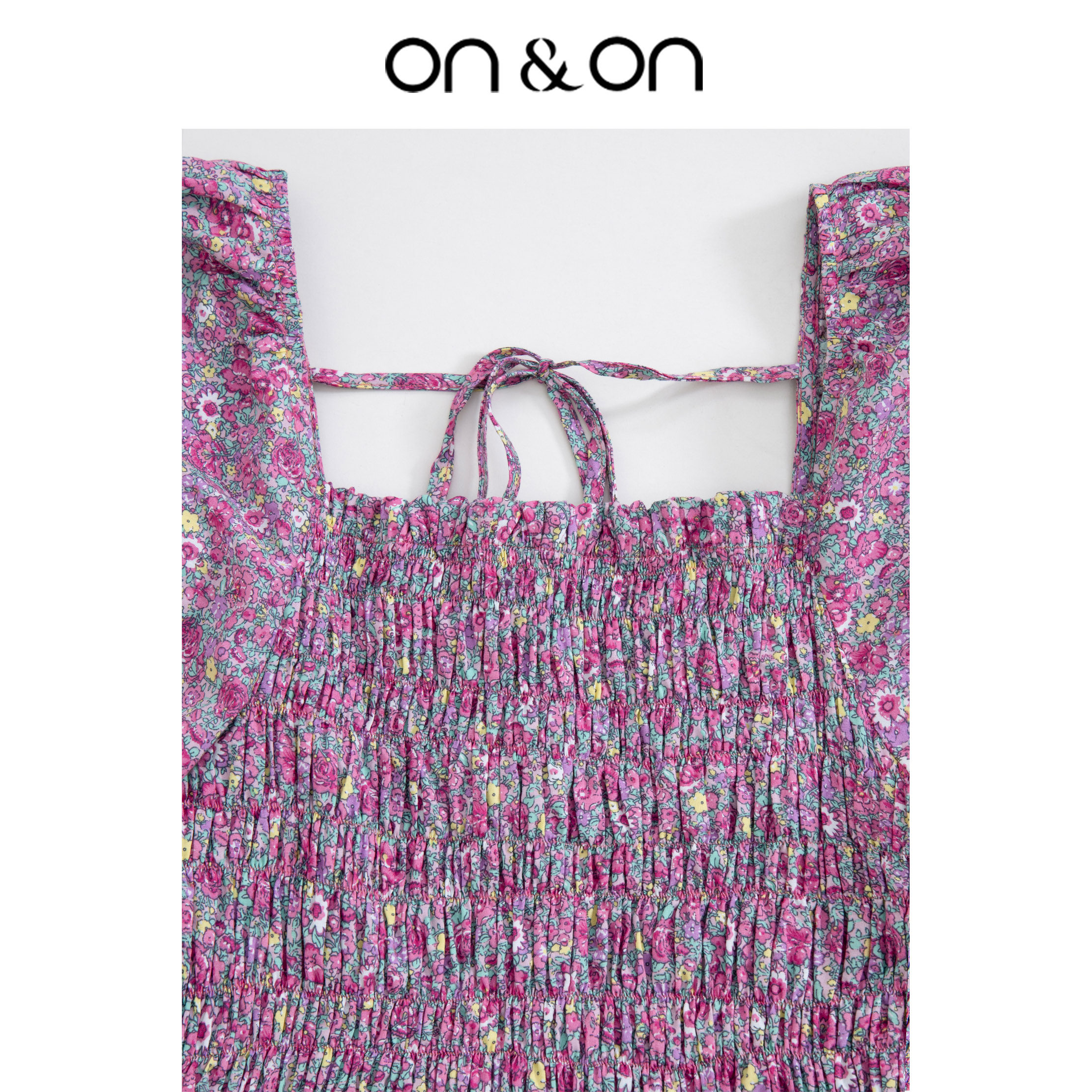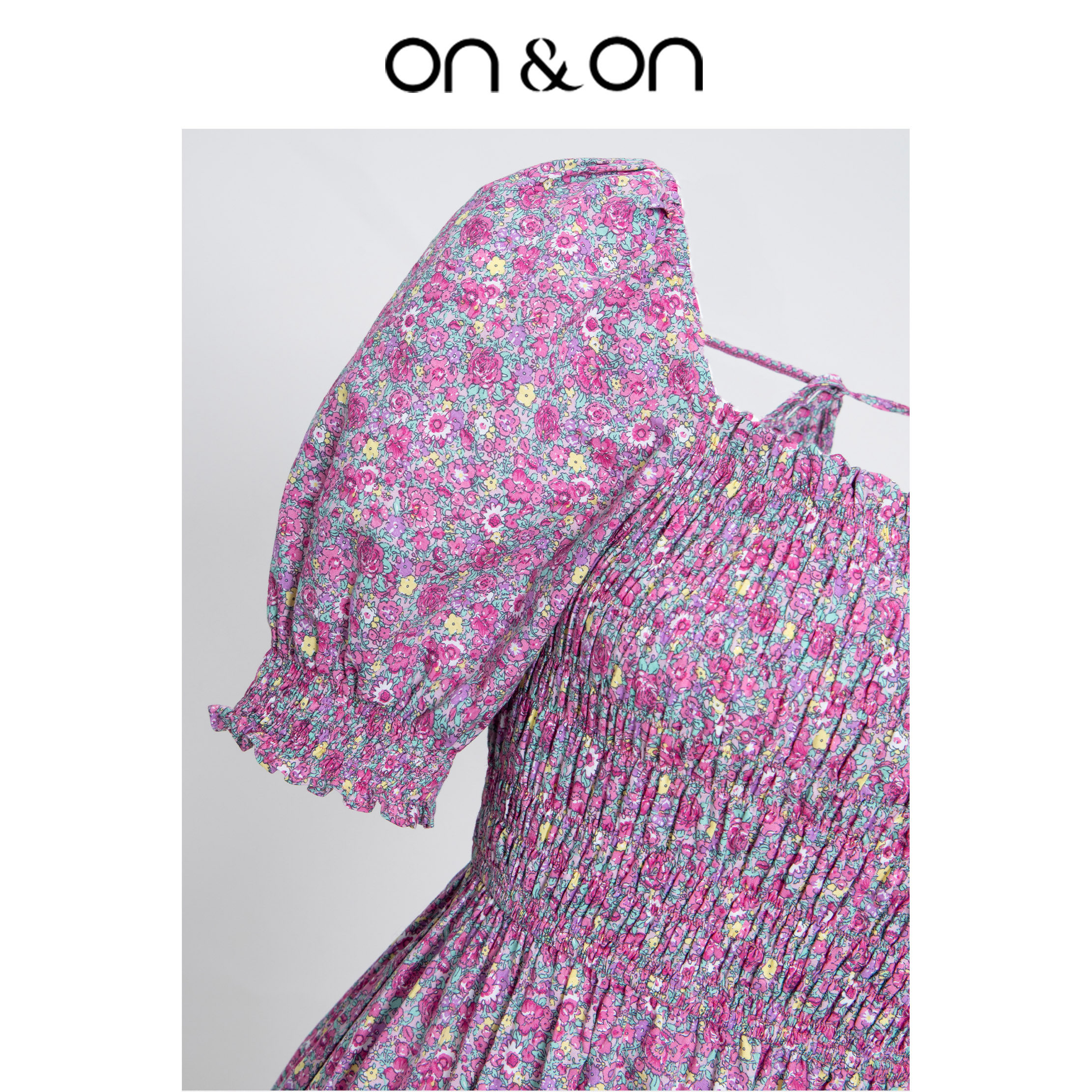 ON&ON/安乃安韩系方领一字肩灯笼袖碎花超显瘦连衣裙紫色设计