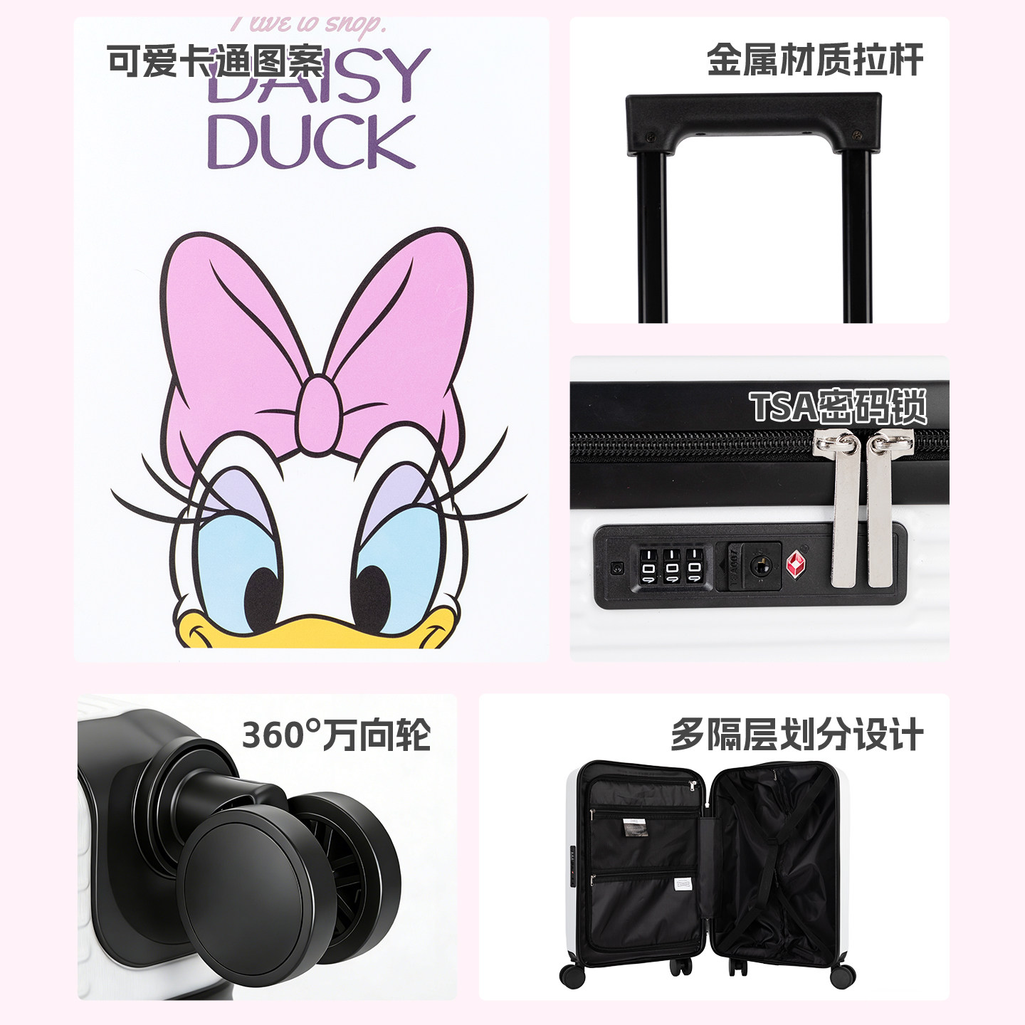 麦斯卡迪士尼行李箱登机卡通学生拉杆箱万向轮大容量20寸旅行箱