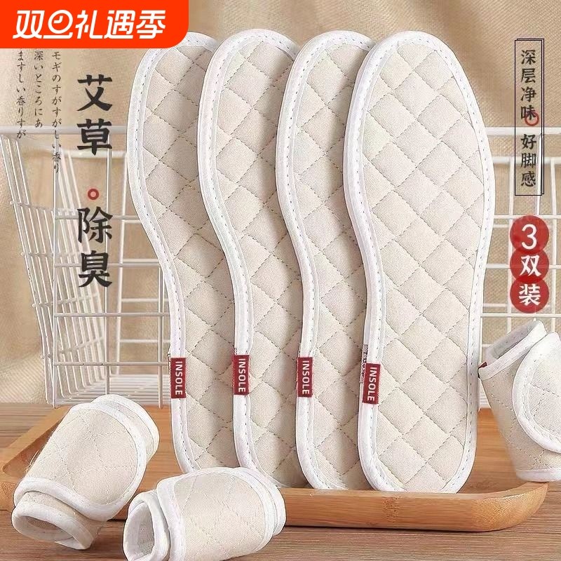 艾草四季除臭亚麻鞋垫男女吸汗防臭透气汗脚专用软底舒适纯棉手工
