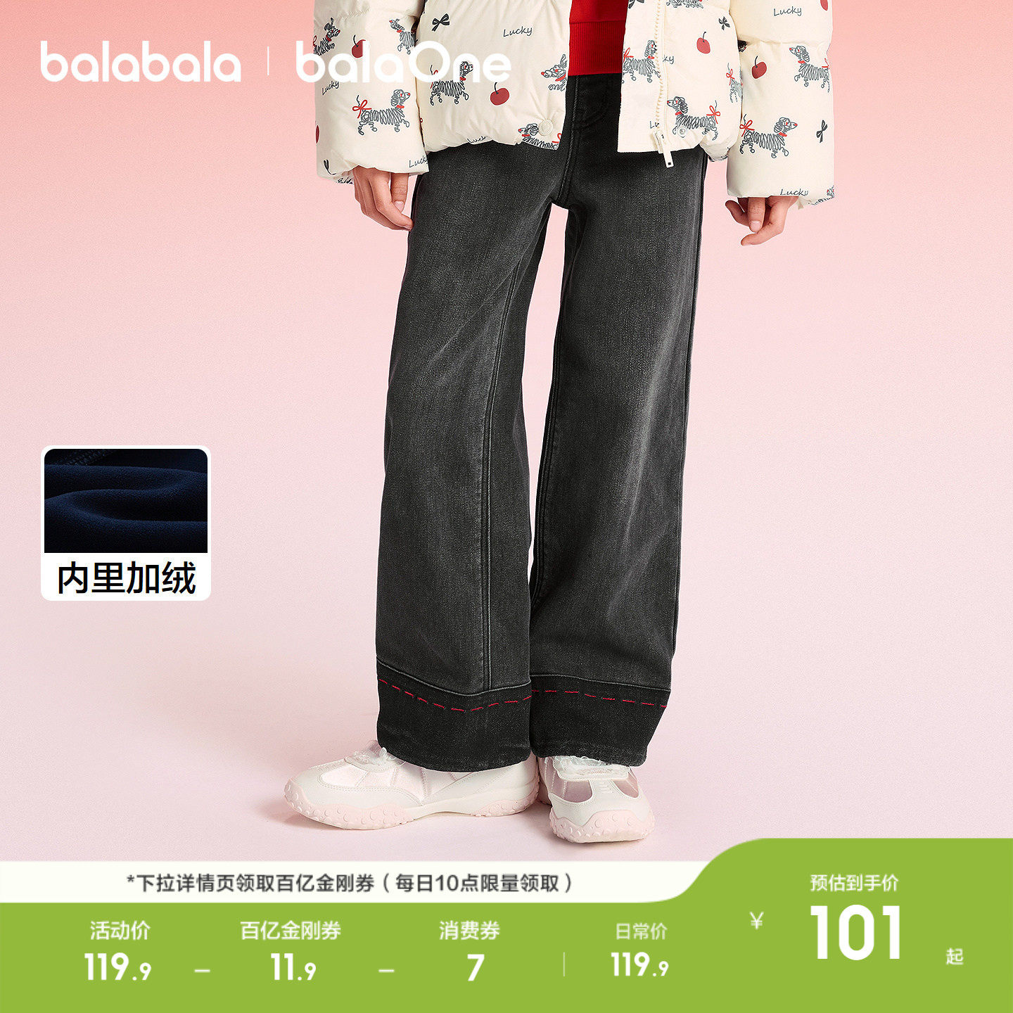 巴拉巴拉童装女童加绒裤子儿童2026新款春秋装牛仔裤直筒拜年服潮