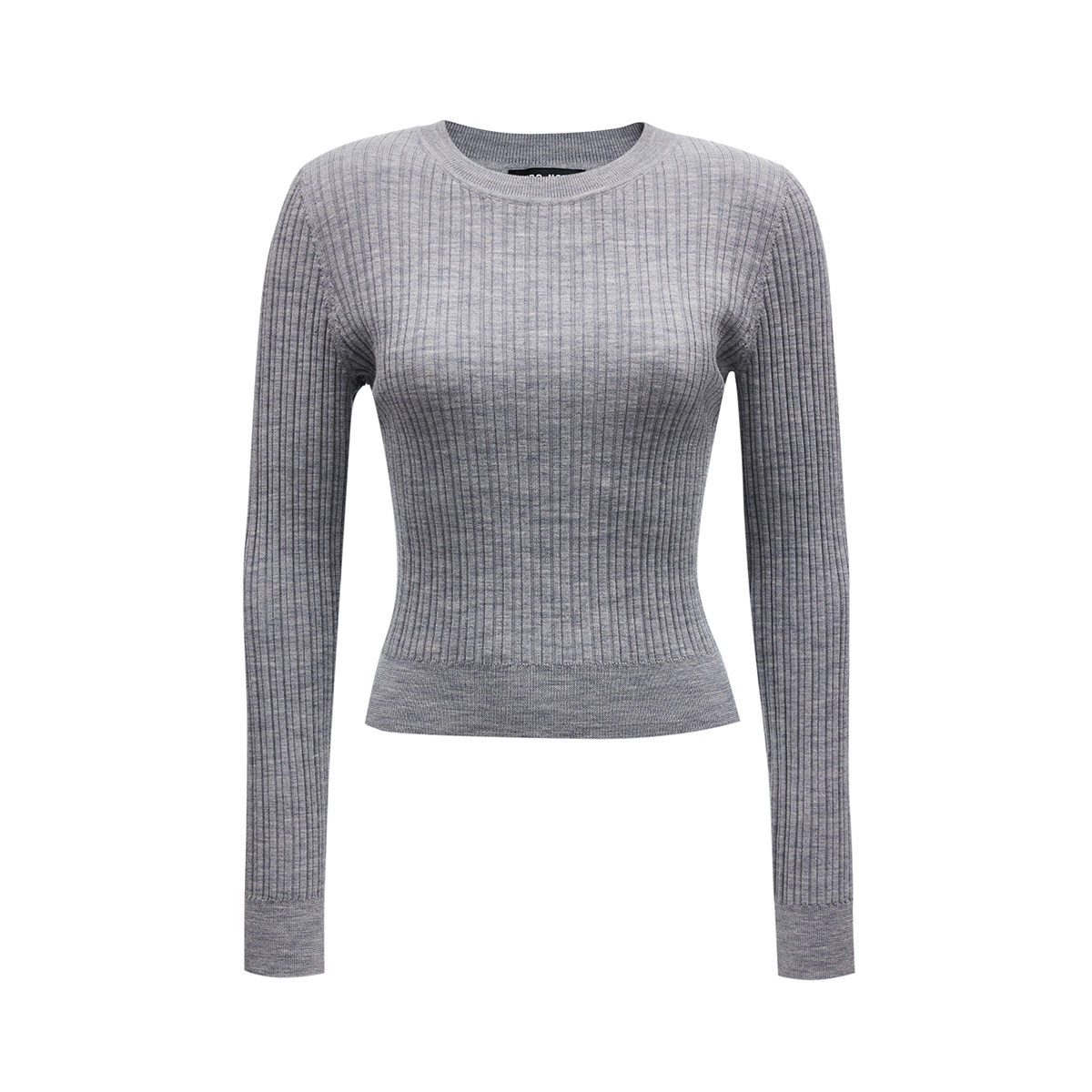 三福长袖上衣2025新款秋季圆领修身针织衫简约纯色内搭打底衫女装