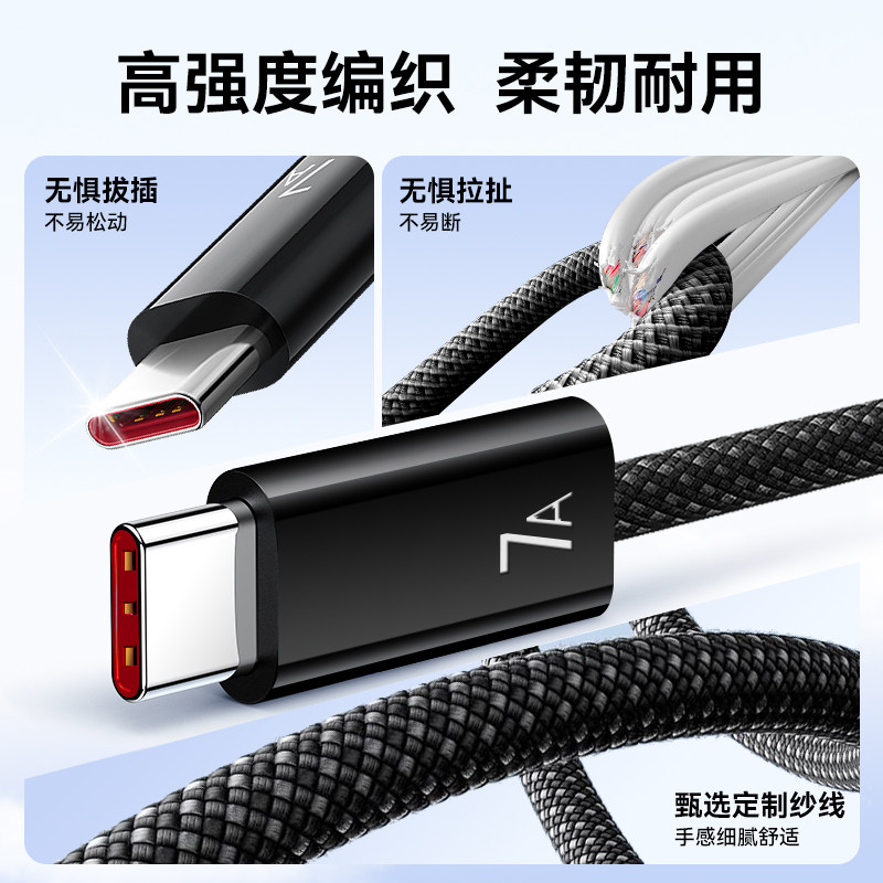 华为编织数据线7A原装140w超级快充6A兼容多协议多品牌手机笔记本电脑平板原装正品充电器线双头Type-C1.8米