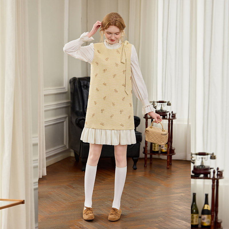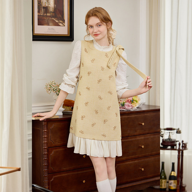 白鹿语小香风蝴蝶结无袖连衣裙26春季新款千金风法式气质背心裙