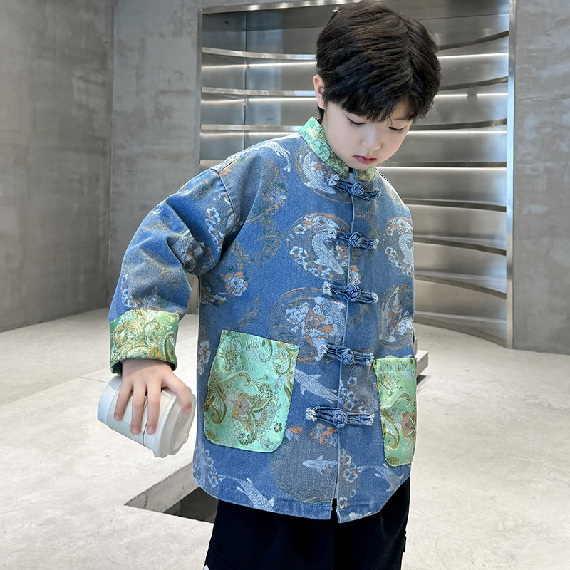 男童汉服春秋2025新款儿童新中式国风帅气古装男孩唐装锦鲤外套潮