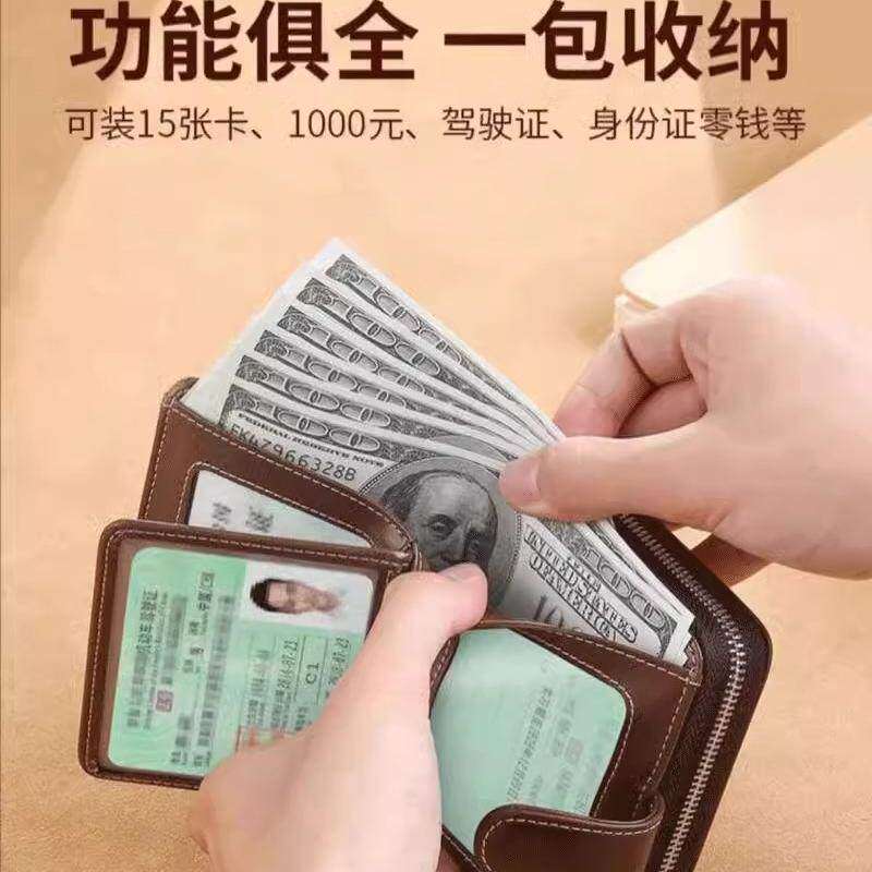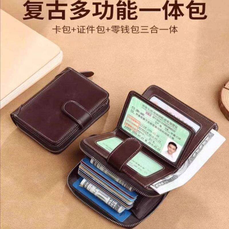 男士复古真皮质感2026短款驾驶证卡包一体大容量多功能竖款男钱包