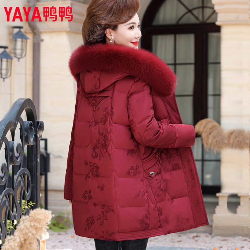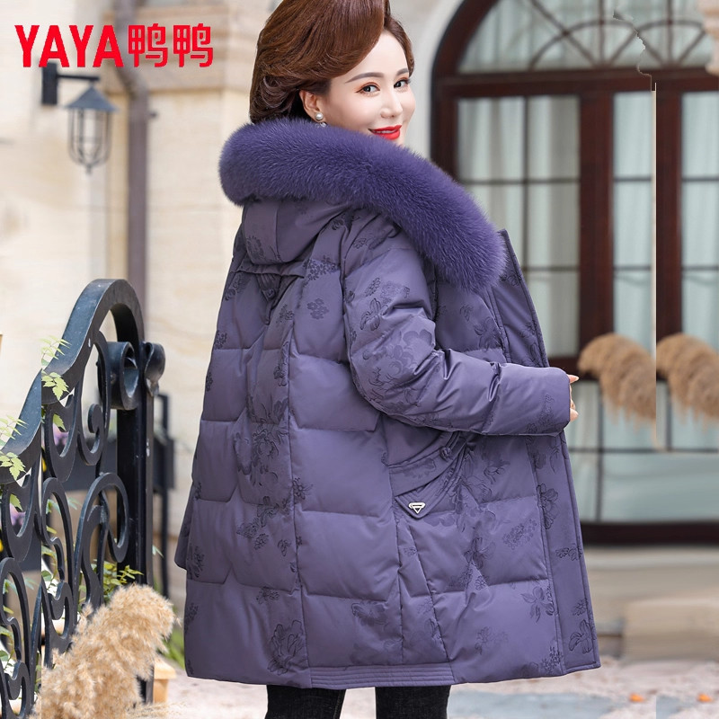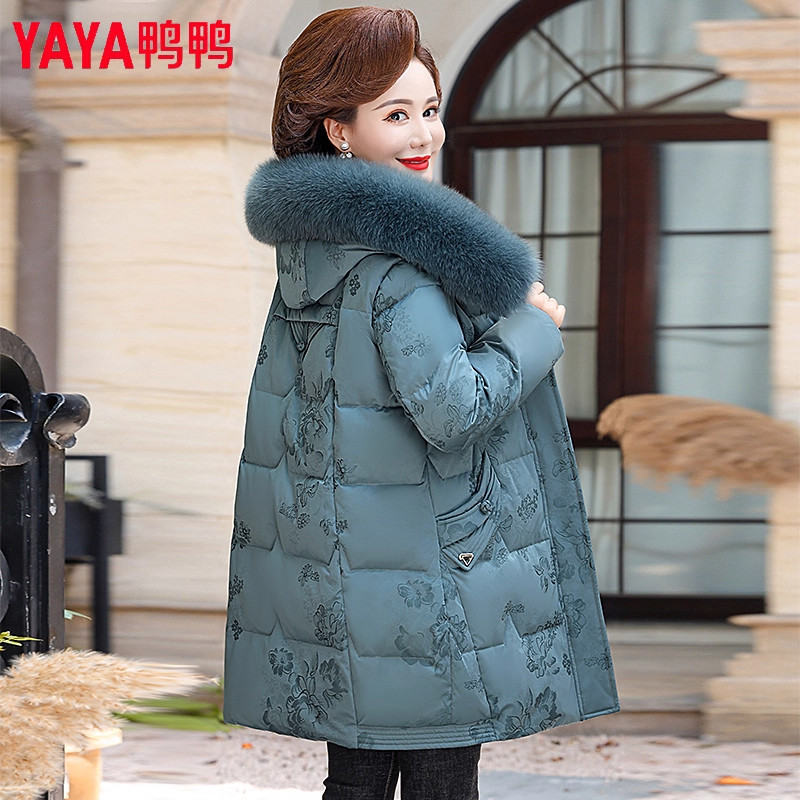 YAYA鸭鸭妈妈冬装羽绒服中长款2025新款中老年人洋气加厚保暖外套