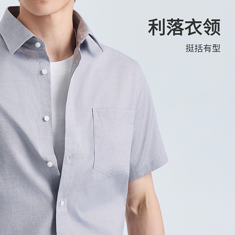 【云感纳米免烫】金利来夏季透气亲肤白色衬衫纯棉男士短袖衬衣男
